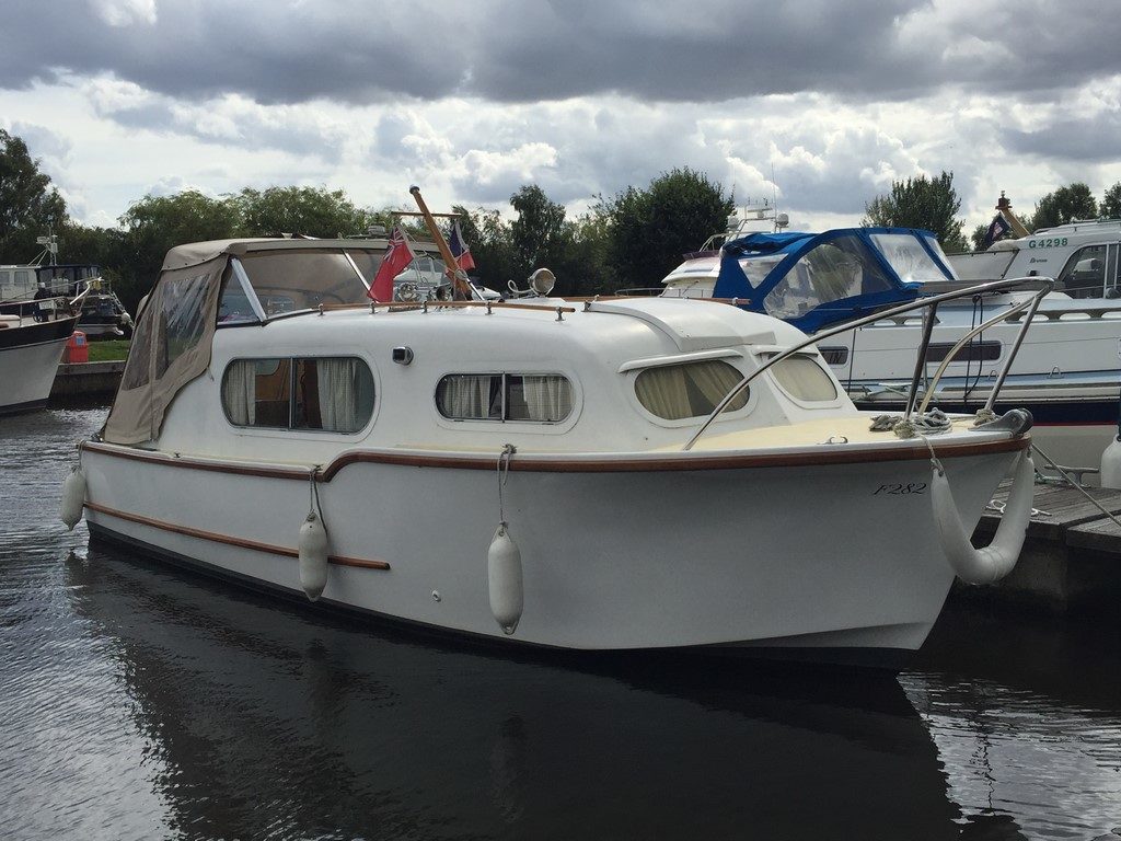 FREEMAN 22 – Circa. 1969 – Powered by a single Nanni 2.50HE 14hp diesel. 4 berth accommodation in one open plan cabin with one toilet. Specification including, holding tank, 2 ring gas hob, oven and grill, full cockpit canopy and cold water supply. A lovely example of these classic Broads cruisers, clearly very well maintained by her current owners, a fine example with the added benefit of a Nanni diesel engine!