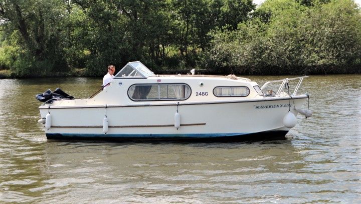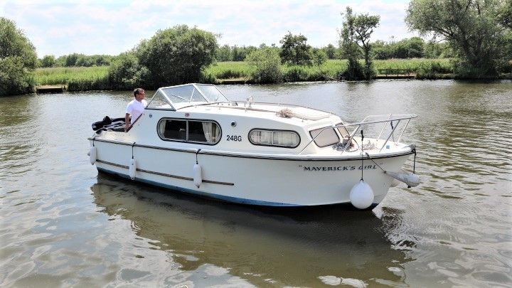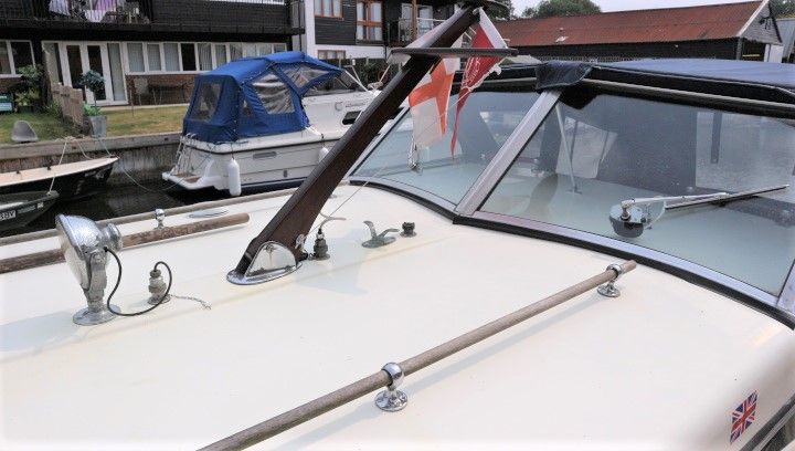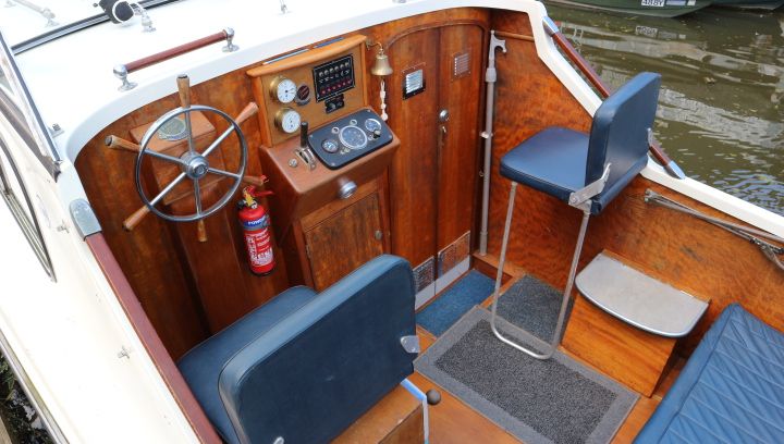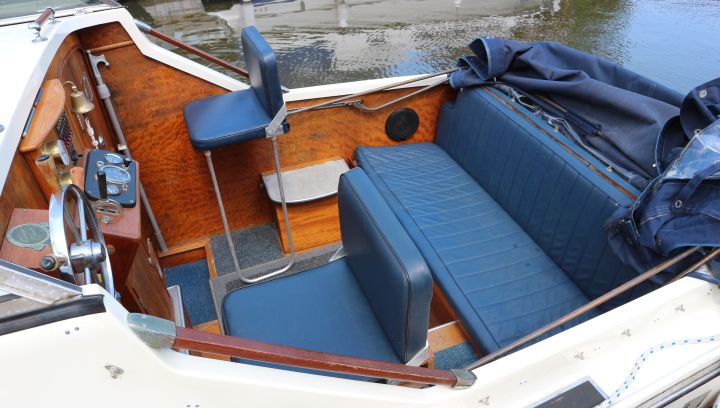 FREEMAN 23 – Circa 1975 – Single Ford Watermota 30hp petrol engine. 4 berth accommodation in open plan layout with 1 x chemical toilet in separate compartment. Galley with sink, 2 burner gas hob & grill. Boat safety expiry 07/20. A pretty river cruiser with the iconic classic freeman lines. NYA STOCK – Sold as traded in.