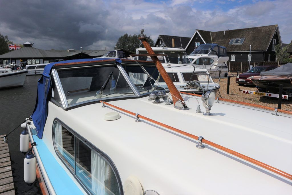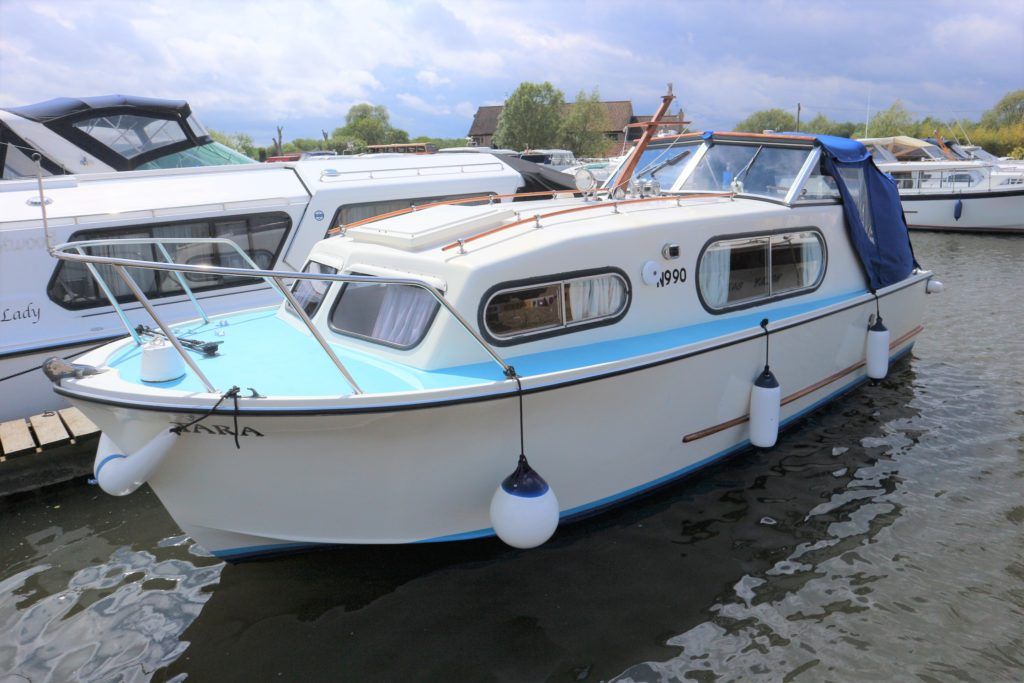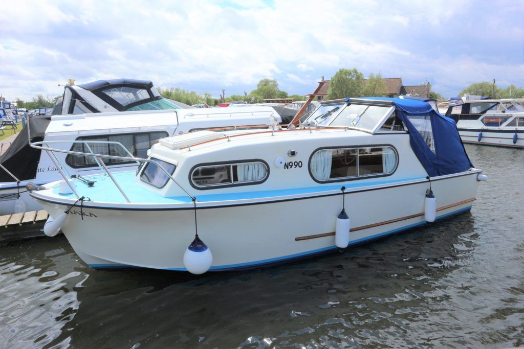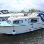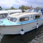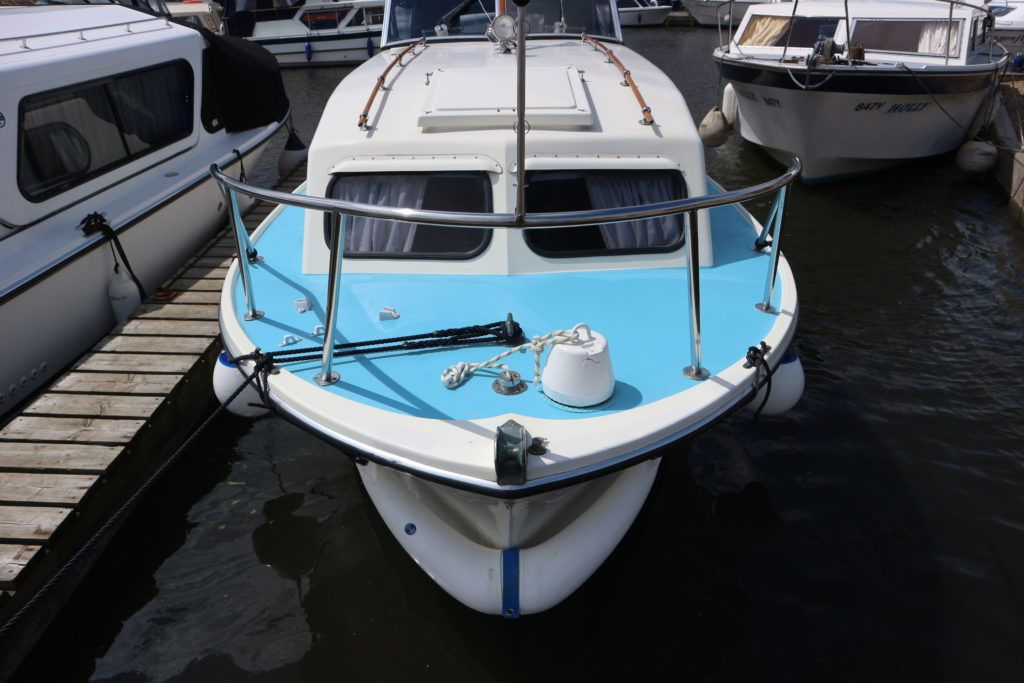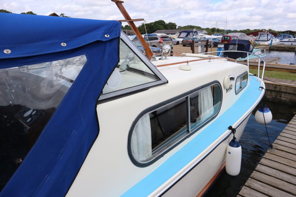 FREEMAN 23 – 1971 – 1 x Perkins 4.107 Diesel Engine. 4 berth accommodation in open plan cabin with 1 x Sea toilet compartment. Specification including shore power, warm air heating, new canopy in 05/18, BSC . A very good example of the popular Freeman river cruisers with the practicality of a diesel engine and low air draft for exploring the Broads .