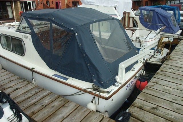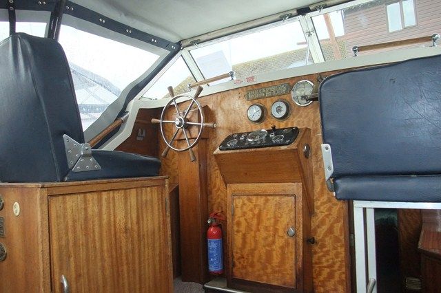 FREEMAN 23 – Built circa 1970, with a Perkins 4.107 diesel engine, 4 berths, electric seatoilet, electric pumped hot water supply, two burner with oven and grill, fridge, removable screens, folding canopy, davits, shore power. An attractive example of these popular river cruisers.