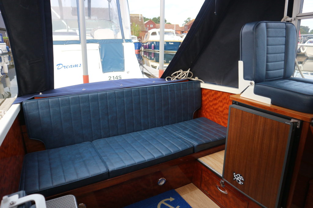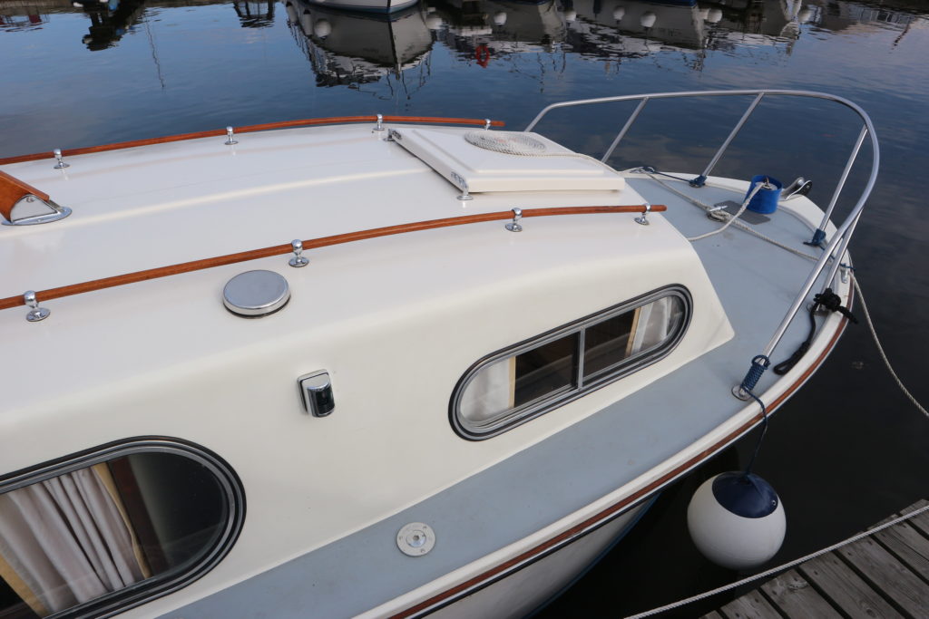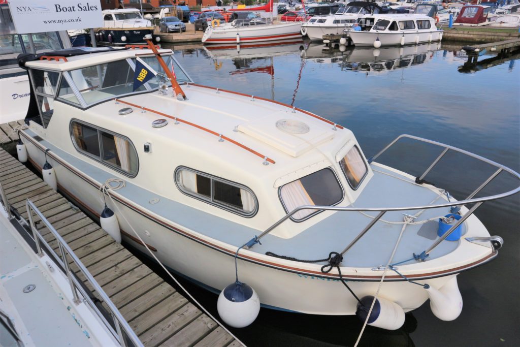 FREEMAN 23 – Circa 1971 – 1 x Ford Watermota 30hp petrol engine. 4 berth accommodation with 1 x toilet to holding tank. Galley with 2 burner gas hob & grill, sink with cold water & fridge to cockpit, BSC 09/20, Fish Finder. An exceptional example of these classic cruisers presented in very good condition with the removable hard top configuration & hinged side windows. Early viewing advised!