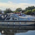 FREEMAN 24 – circa 1980 – Nanni 3.30 29hp diesel engine. 4 berth accommodation with 1 x electric toilet to holding tank. Galley with two burner hob, oven and grill, fridge. BSC 06/2022. Shore power, victron battery charger and monitor system . A popular river cruiser offering spacious accommodation for her size and a good introduction to inland waterway boating.