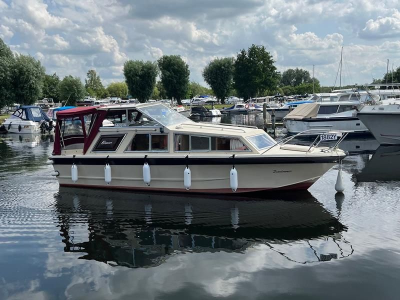 FREEMAN 24 – 1977 – Powered by a Perkins 4.108 50hp Diesel engine through shaft. Up to 4 berth accommodation with 1 x toilet compartment. Galley with 2 burner gas hob, oven & grill, large fridge in cockpit. Specification including warm air heating, shore power, solar panel charging, calorifier, BSC 02/26. A well presented Freeman 24 with the desirable and economical diesel engine which benefits from a host of recent upgrades in equipment and specification. Ideal for cruising the inland waterways in comfort.