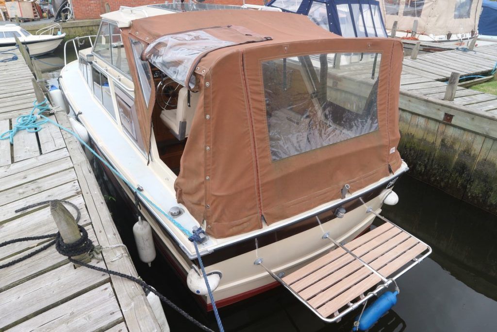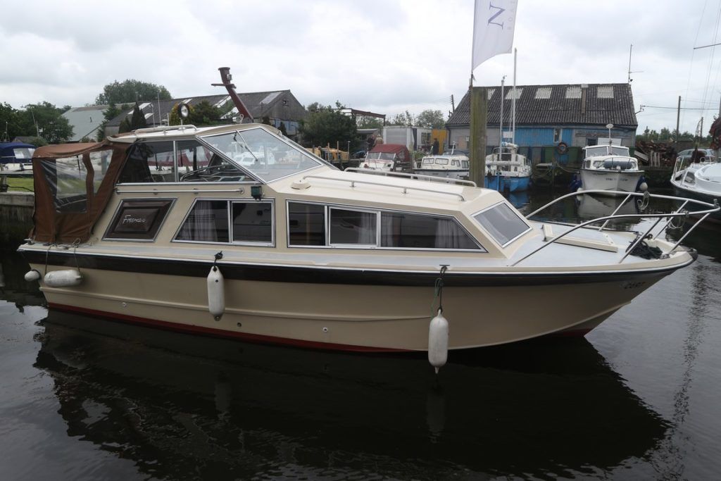 FREEMAN 24 – Circa. 1980 – Powered by a single Watermoter Sea Tiger 50hp petrol engine. 4 berth accommodation with one chemical toilet. 240v sockets, calorifier, solar panel and 2 burner hob and grill. Recent engine service and full machine polish. A classic Broads cruiser!