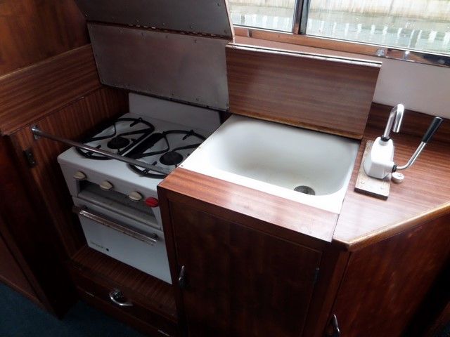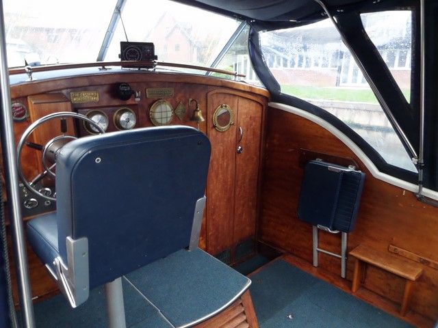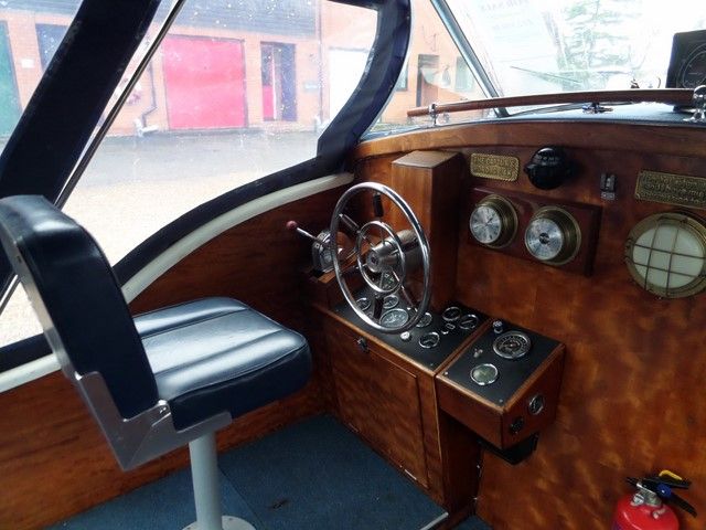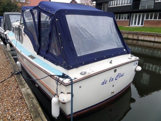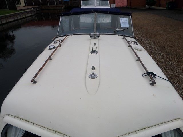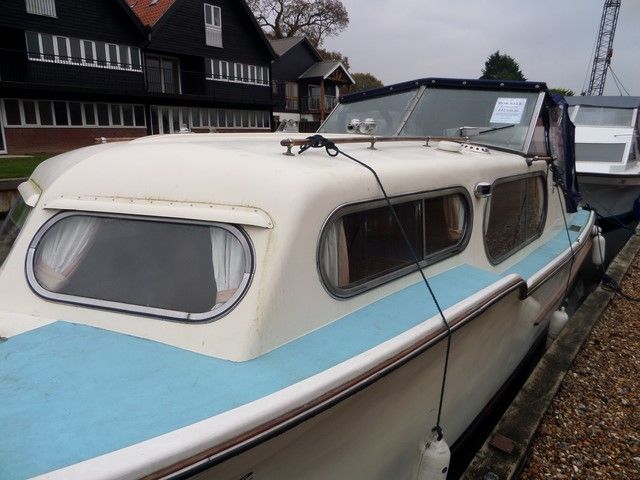 FREEMAN 26 – 1970 – Single WaterMota Sea Tiger 50hp petrol engine. 4 berths in spacious cabin, toilet compartment. Full canopy, folding mast, 2 ring hob/oven/grill, sink. Freeman boats are extremely popular and well known on the Broads. She is in good order and has had her engine re-built recently in 2014.