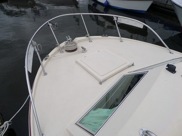 FREEMAN 27 – 1980, 1 x Vetus M4.17 42Hp diesel engine, 4 berths in 1 cabin, 1 x toilet & shower, Boat Safety Certificate. Spec including: shore power, battery charger, inverter, hot air heating system, bow thruster, holding tank, calorifier/immersion heater and much more. A well known river cruiser in excellent condition and with a newer engine in, she really is a superb example!