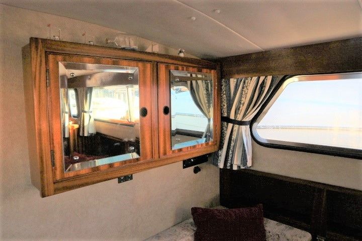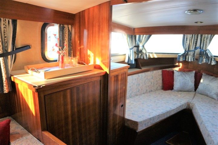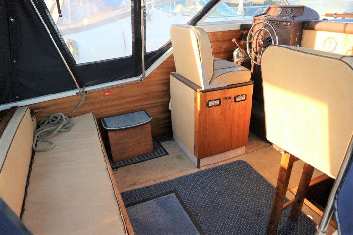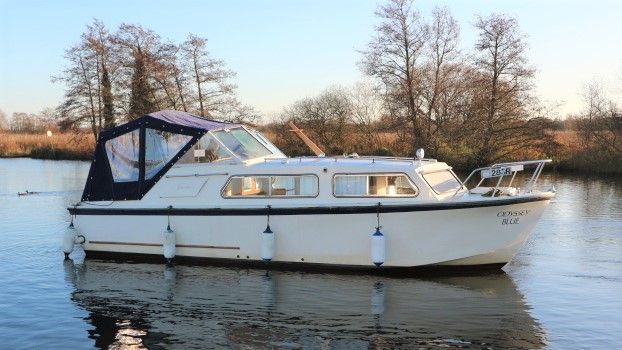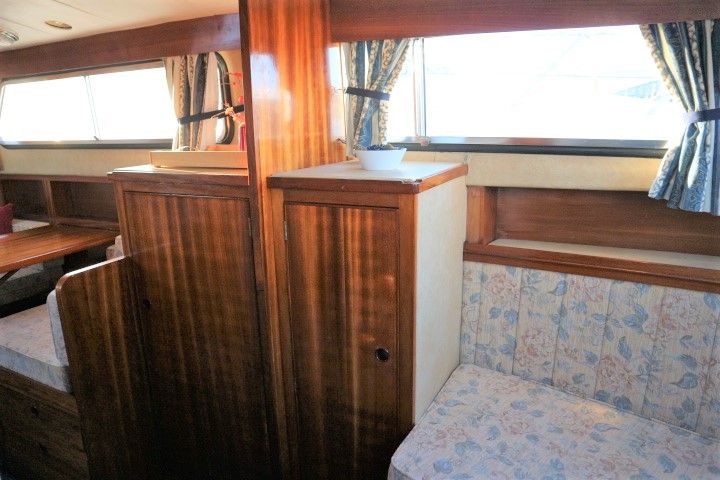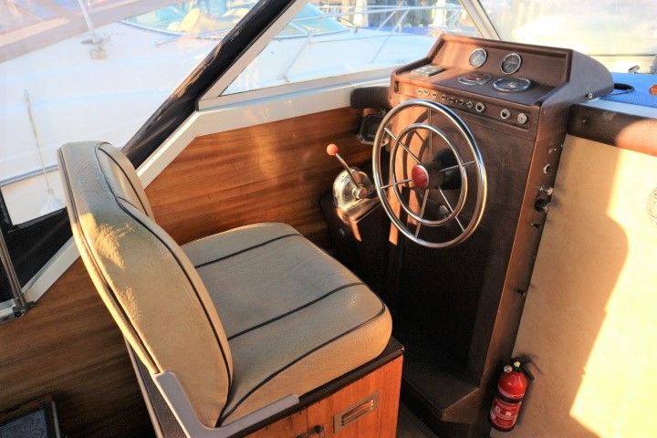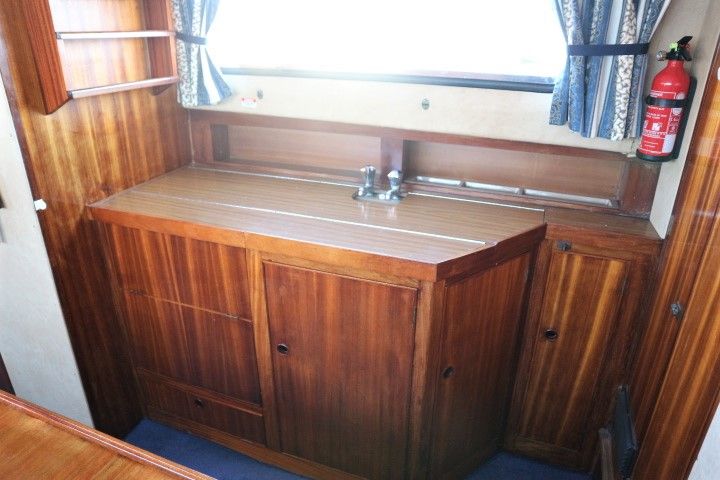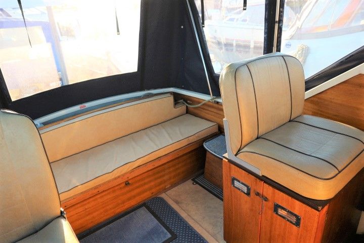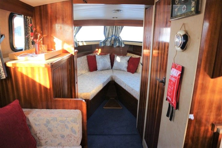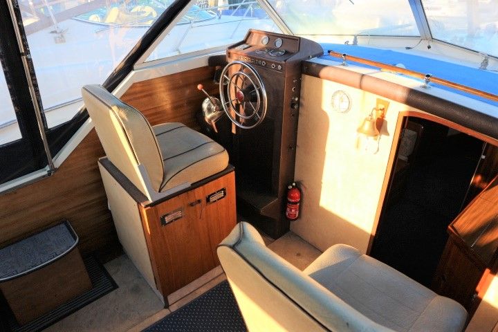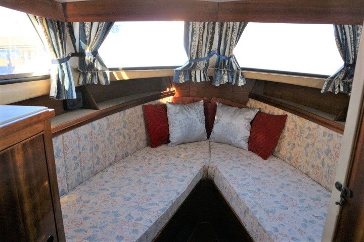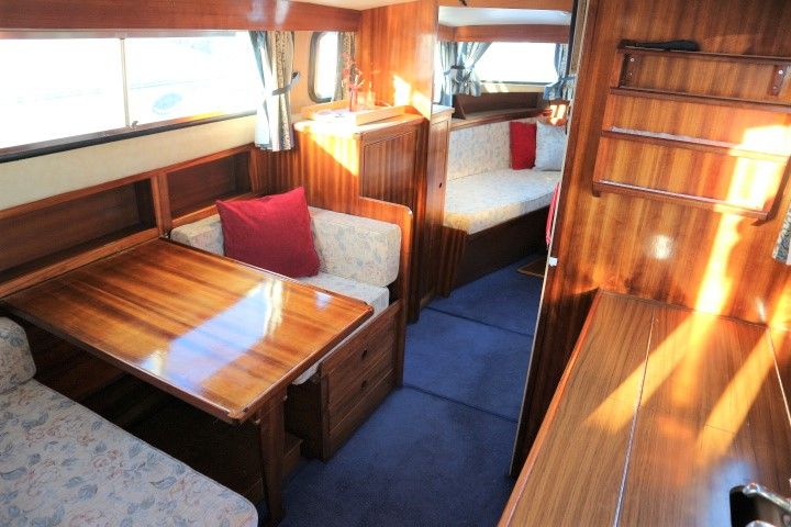 FREEMAN 28 – 1975 – 1 x Ford Watermota Sea Tiger 50 hp petrol engine. 4 berth accommodation with 1 x toilet to holding tank/shower compartment. Galley with two burner hob & grill, sink with hot and cold water, electric fridge. Spec including Bow Thruster, recent canopy, folding screens, BSC 06/20. A nice example of these larger classic Freemans with the benefit of a Bow Thruster for easy handling and low airdraft for navigating Bridges. NYA STOCK – Sold as traded in.