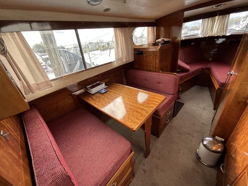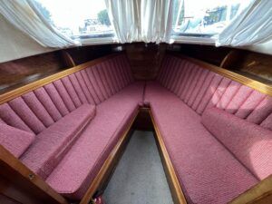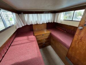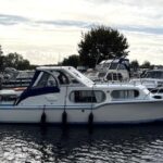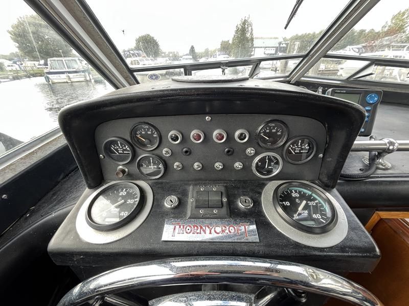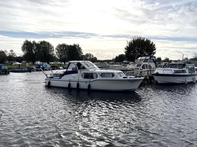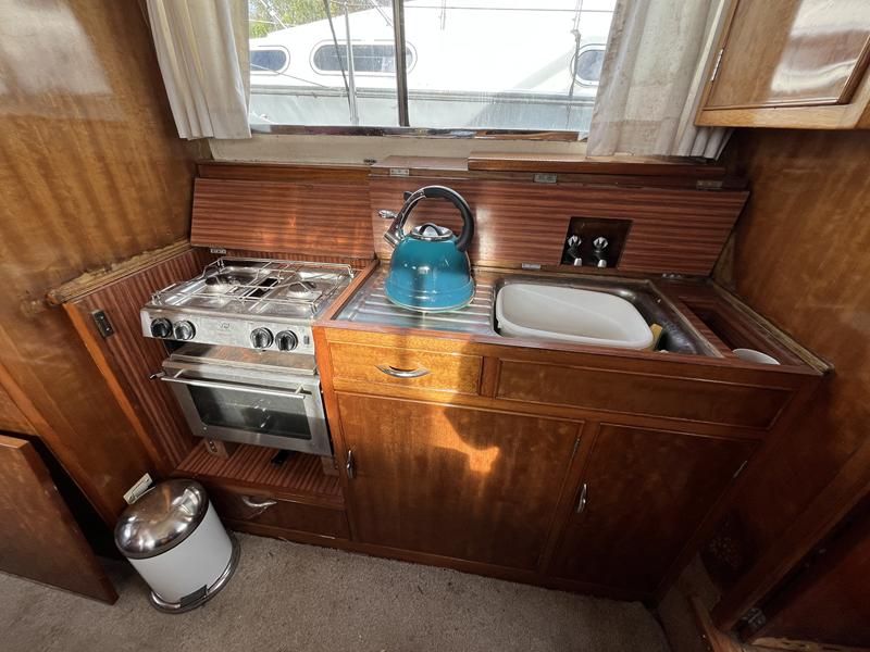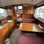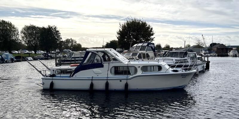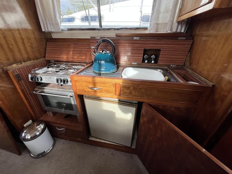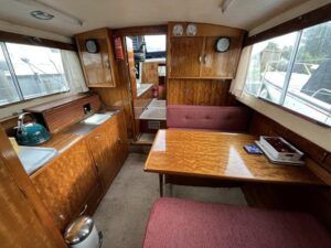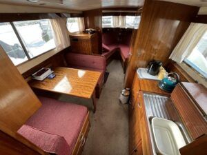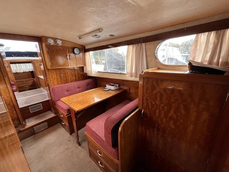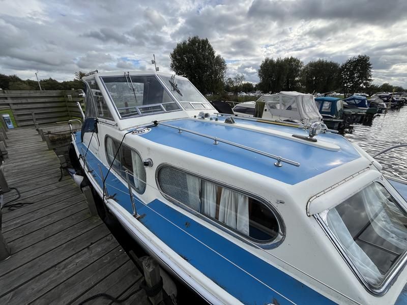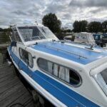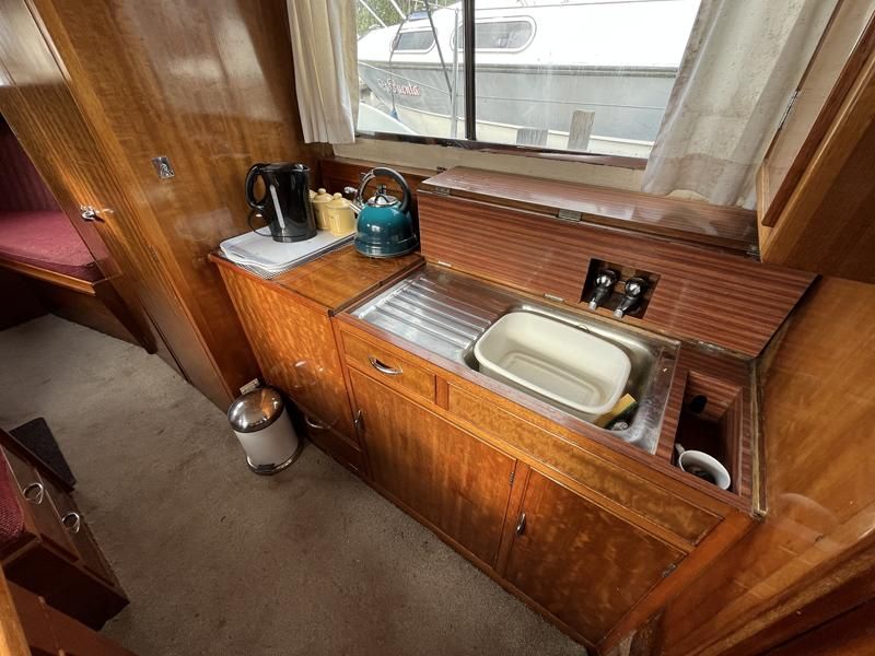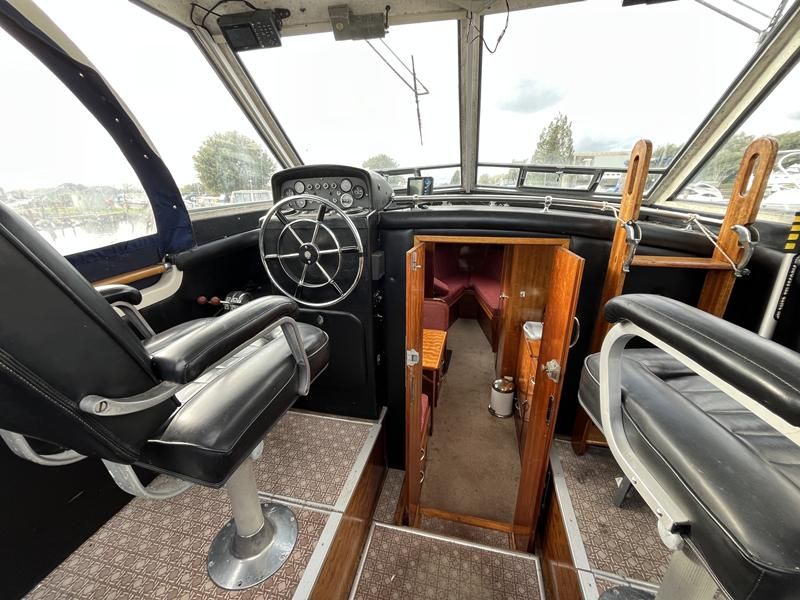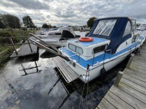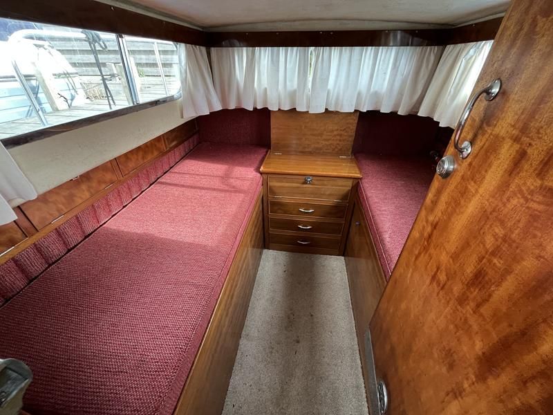 Freeman 32 MK1 – 1969 – 2 x Thornycroft 120hp diesel engines through shafts. Up to six berth accommodation over two cabins with separate toilet compartment. Galley with gas 2 burner hob, oven and grill, sink with hot & cold water and fridge. Wheelhouse with helm and co-pilot seat, trim tabs, davits. A Classic aft cabin cruiser with renowned styling and generous accommodation. Suitable for low speed inland cruising or capable of coastal pursuits.