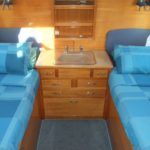 FREEMAN 32 MKII – Built circa 1972 with twin Ford Sealion 120hp diesels, 6 berths, two toilets, shower, new oven/grill, new fridge, new Eberspacher heating, shore power, immersion heater, Furuno GPS navigator, Cobra VHF Radio.