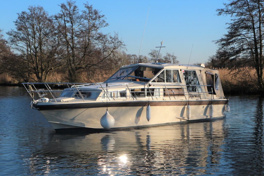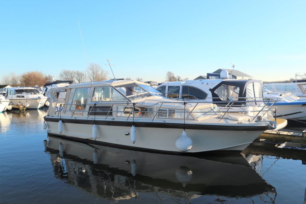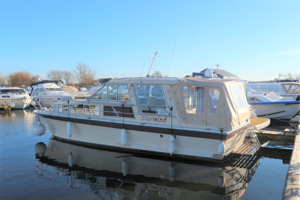 FREEMAN 33 SEDAN – 1983 – 2 x Ford Sabre 120hp diesel engines. 4 berth accommodation with 1 x electric sea toilet/shower compartment. Specification including shore power, battery charger, Eberspacher warm air heating, immersion heater, Speed log, depth log, BSC 01/21. A well kept example of these spacious cruisers offering comfortable accommodation and a large aft cockpit. Ideal for inland and coastal pursuits.