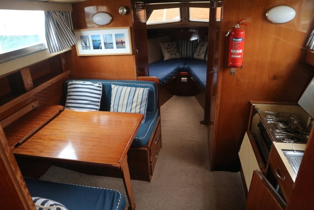 FREEMAN 33 SEDAN – 1979 – Powered by twin Ford Sabre 120hp diesels. 6 berth accommodation with one toilet and one shower. Specification to include; Warm air heating, holding tank, shore power supply with Victron energy battery charger and 240v sockets. Engine service 2019. BSC 04/23. In current ownership for 7 years and used on the Broads. A clean example for her age.