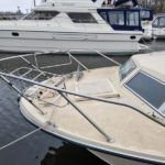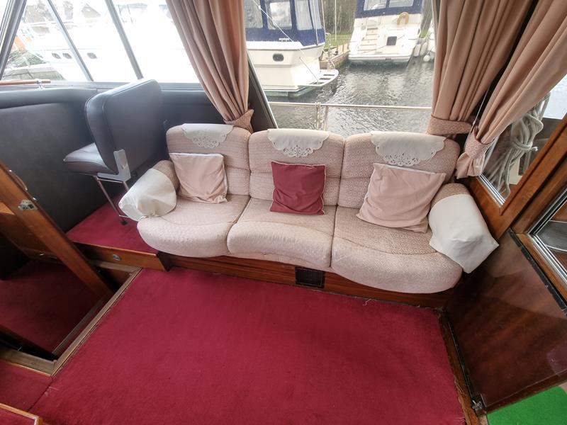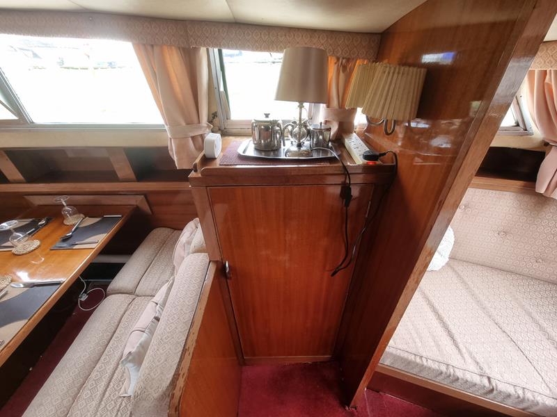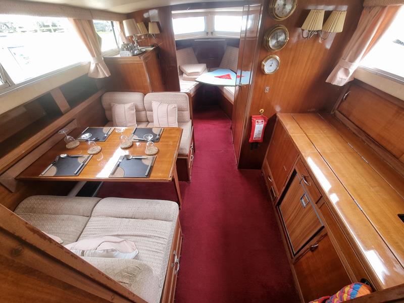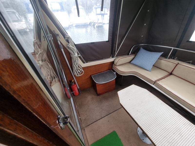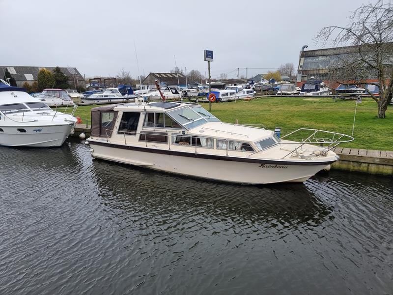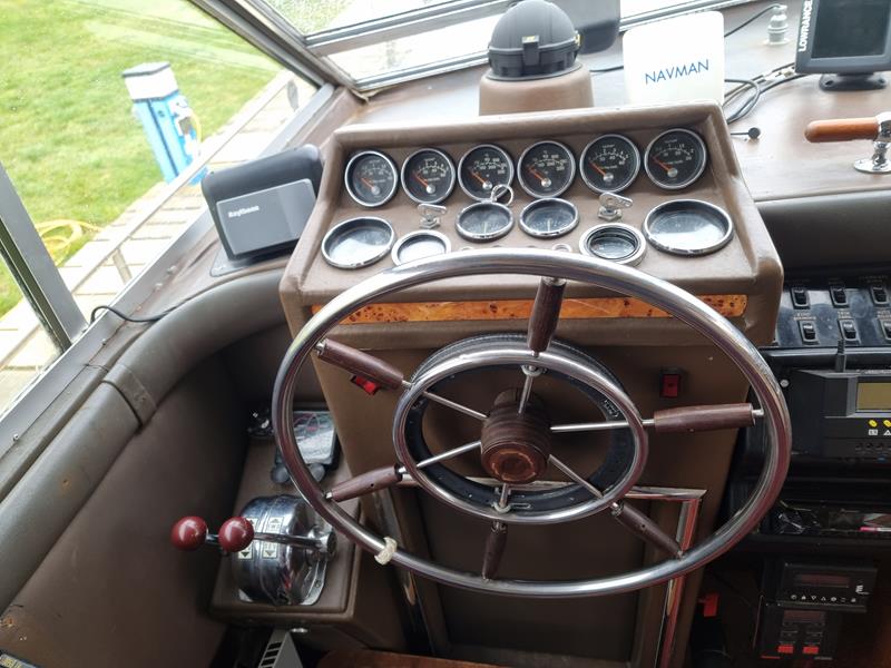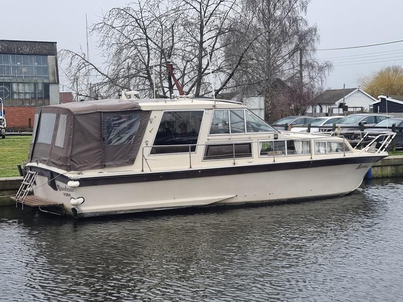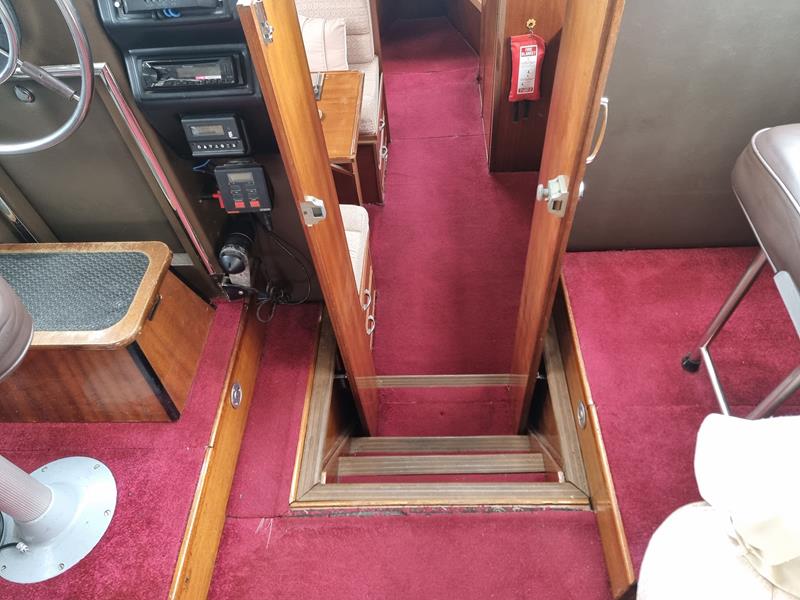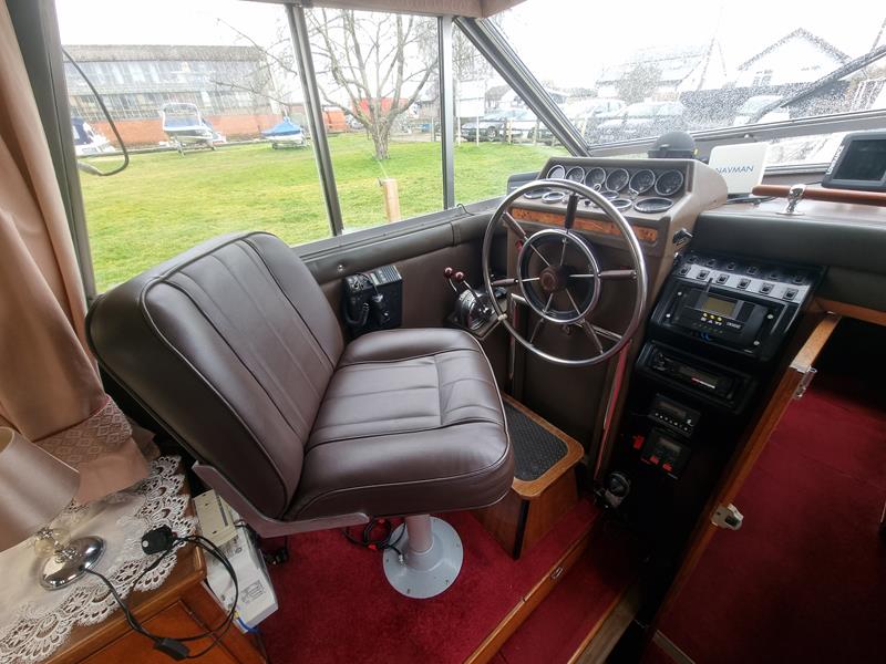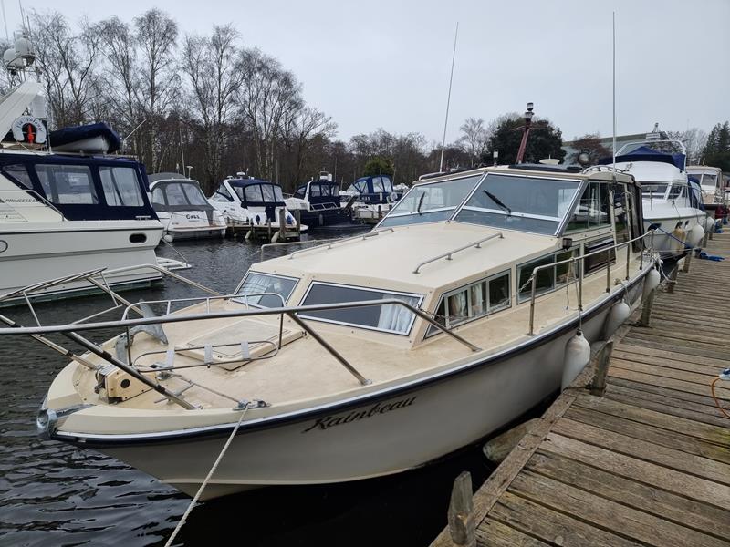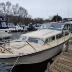 Freeman 33 Sedan – 1978 – 2 x Ford Sabre turbo 150hp diesel engines through shafts. This classic yacht features three cabins, two double berths, and one toilet and shower compartment. Specification to include; Sterling battery charger, 240v shore power, Eberspacher wet heating system, solar panels, GPS, VHF, Chart plotter, Autopilot, Seawolf windlass, hot water system and a fully equipped galley. The Freeman 33 is a superb family boat offering spacious accommodation, excellent seakeeping capabilities and high-quality craftmanship.