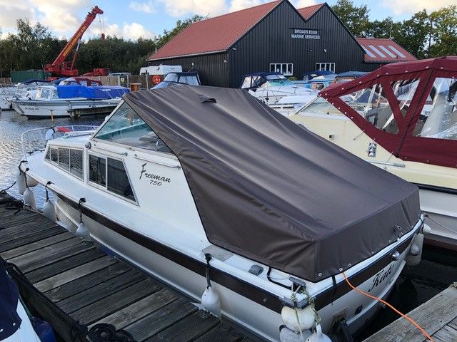 Freeman 750 – 1982 – Single Ford Watermota Sea Tiger 1.6ltr petrol engine through a shaft. 4 berth accommodation with a single toilet compartment. Specification to include; full, folding canopy, tonneau cover, resealed windows, folding windscreens, battery charger. “Kate” is a vessel that has been cared for, and is in lovely condition. She has the sought after folding roof/windscreen configuration making her ideal for exploring the quieter parts of the Norfolk Broads. More pictures to follow.