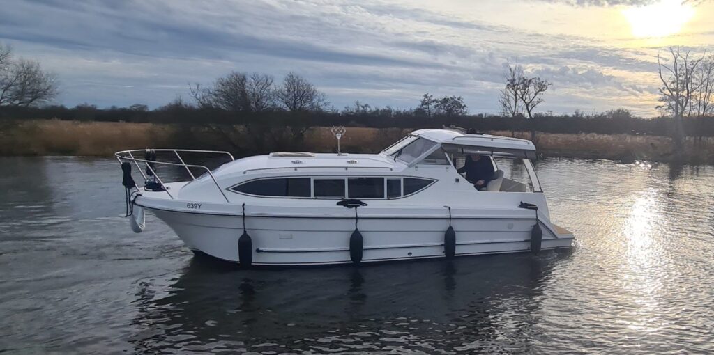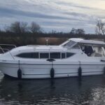 Fun 27 – 2014 – Single Nanni 30 hp diesel engine. 3 berth accommodation in 2 cabins. This boat has recently undergone a high quality refit for a very decerning client emulating many features of the Haines 26 model, including new interior cabinetry in Walnut, new soft furnishings, canopies and synthetic decking. This is a very high spec boat with warm air heating, bow-thruster, battery charger, inverter, multi-function media system, holding tank, folding screens & hardtop, the list goes on. Viewing strongly recommended.