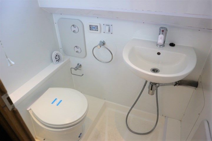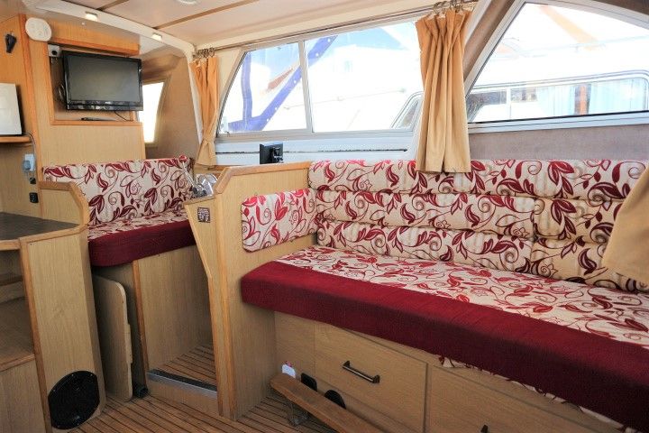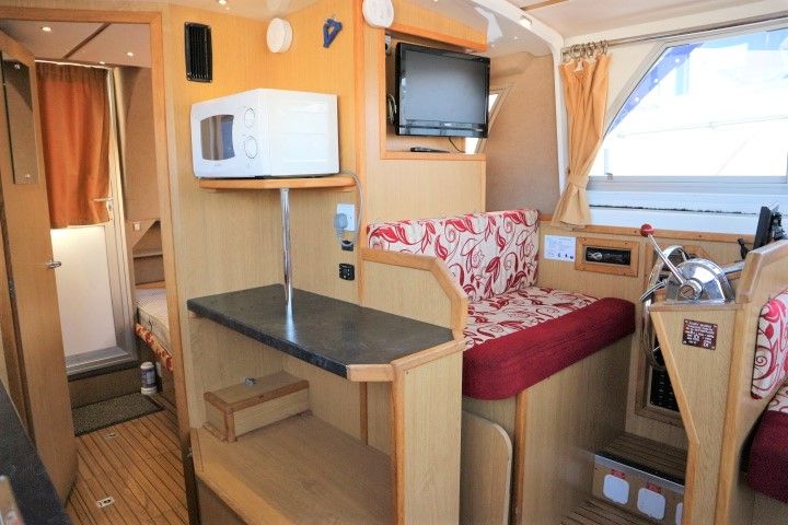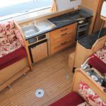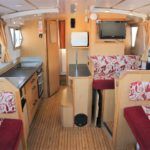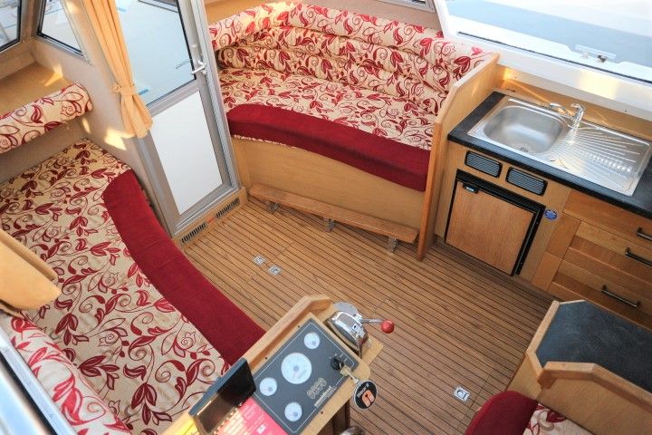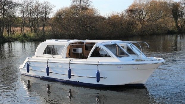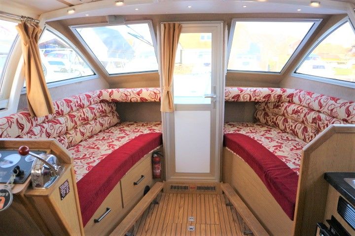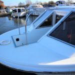 FUNNELL 27 FD – 2013 – Nanni N4.38 (38hp) diesel engine. 4 berth accommodation with 1 x en-suite electric toilet/shower compartment. Comprehensive spec including bow thruster, shore power, battery charger, inverter, immersion heater, warm air heating, reversing camera, split sliding roof over saloon, BSC 03/21. A modern forward drive cruiser with spacious layout for the size & low airdraft, ideal for extended Broads cruising.