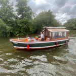 GENTLEMANS CABIN LAUNCH – 1960, Timber day cruiser with a Mercury 9.9hp outboard engine. Complete with fenders, navigation lights, battery and full cover. Boat Safety Certificate until April 2023. A very pretty traditional timber launch full of character and charm.