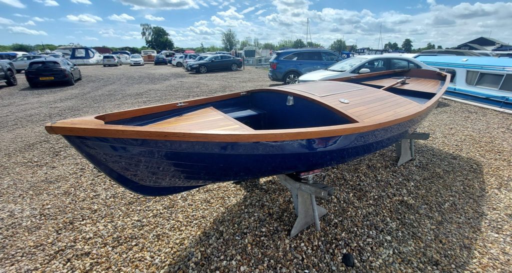 Gentlemans Launch – 2018 – powered by a single Beta 3 cylinder diesel engine through a shaft. Seating for up to 6. Specification to include; teak decks, stainless steel cleats, tiller steering, automatic/manual bilge pump, USB sockets, full boat cover. An attractive launch, one of only three built. Perfect for trips with family or friends on the quieter reaches of the Norfolk Broads. BSC 08/2026