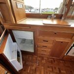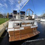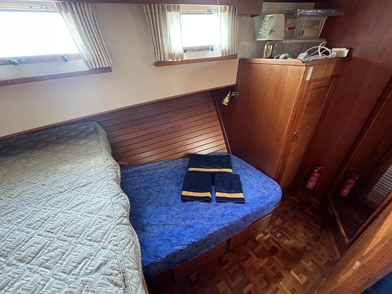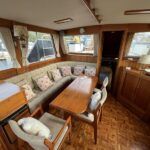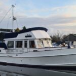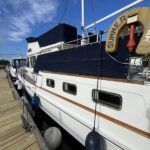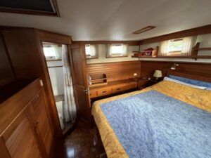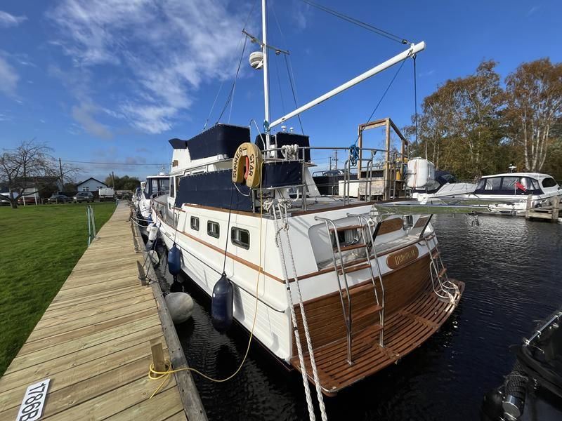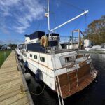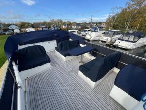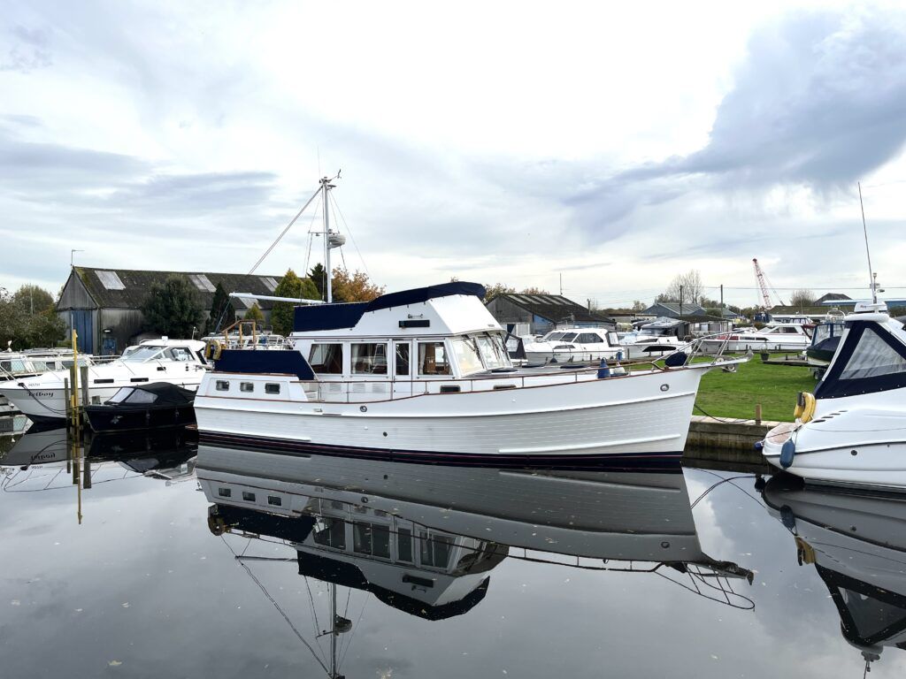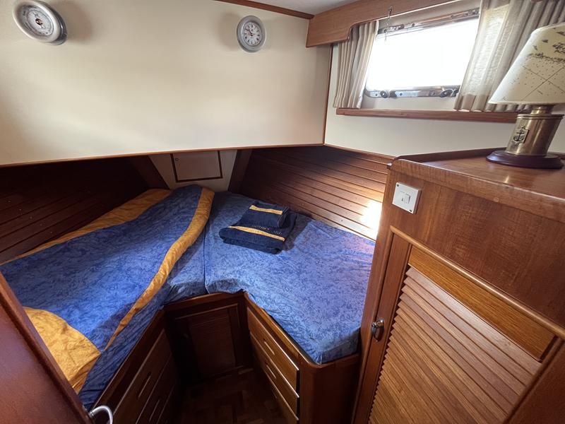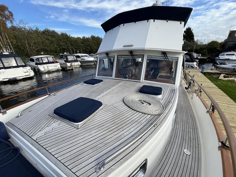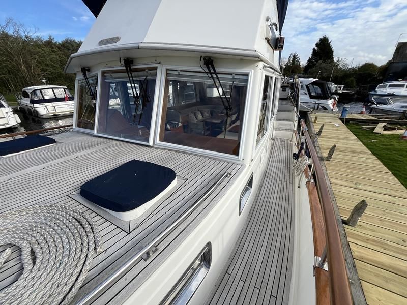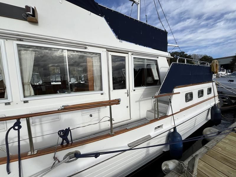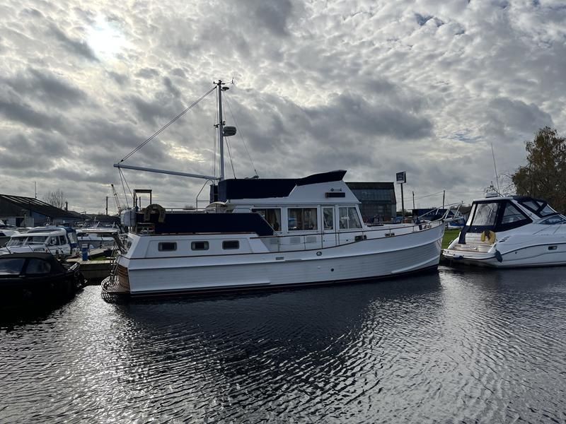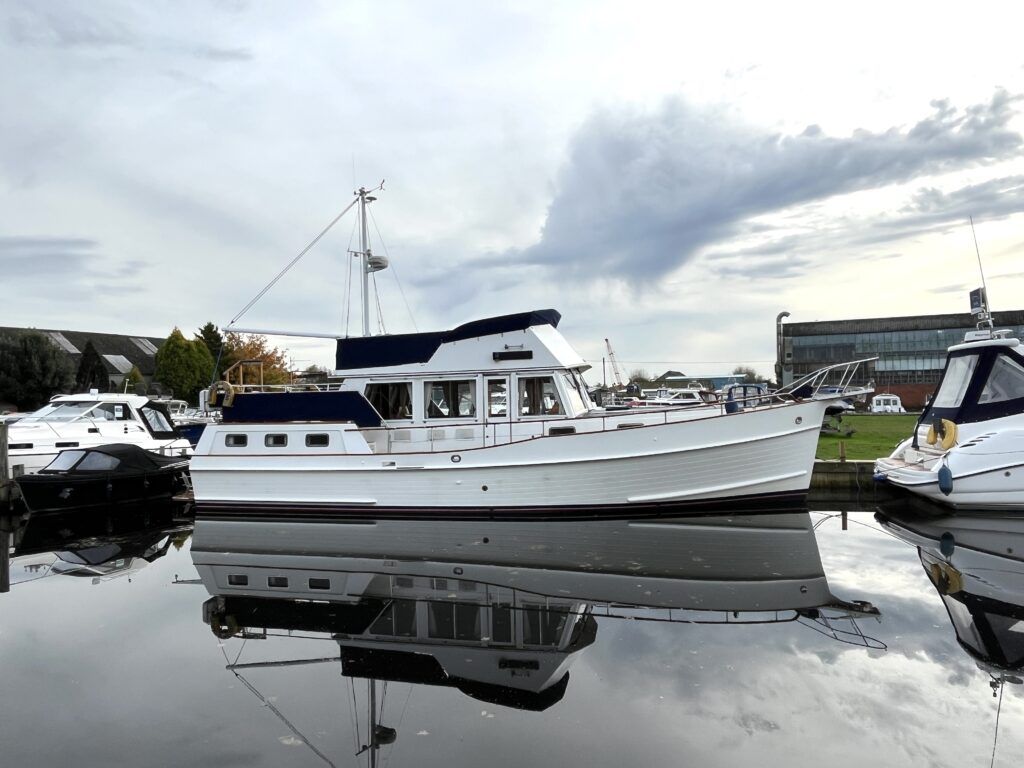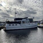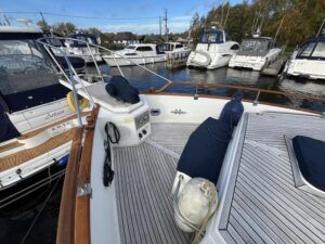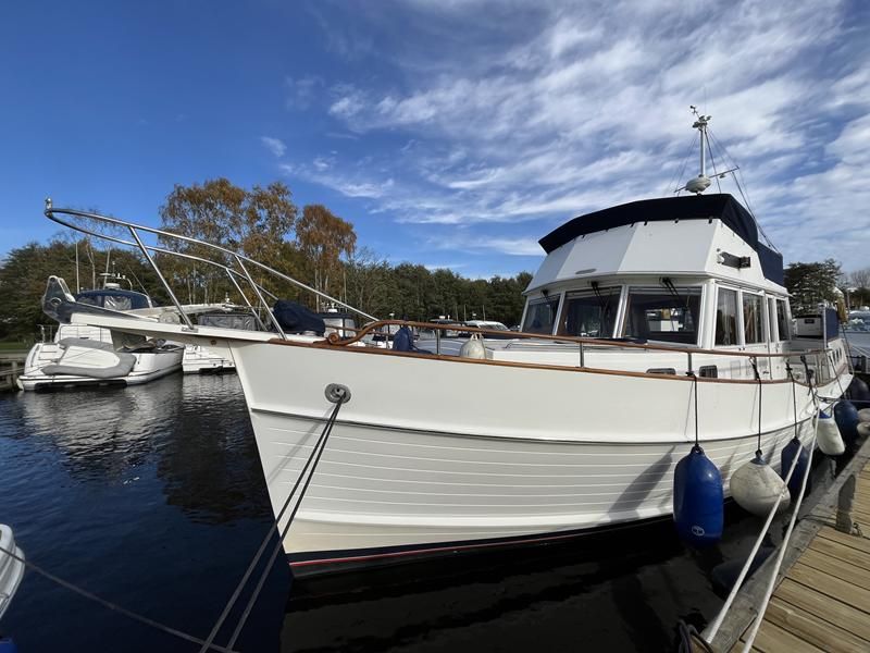 Grand Banks 42 – 1997 – Powered by 2 x Caterpillar 3116 350hp diesel engines. 6 berth accommodation over 3 cabins with 2 x toilet and showers. Master island double owners cabin with separate en-suite heads & shower cubicle. A comprehensive specification including bow and stern thrusters with remote, 6.5kw generator, Hydronic heating, electric windlass, shore power, battery charger, immersion, a suite of Nav equipment inc Autopilot, radar and chart plotters, full teak decking. A timeless modern classic with fantastic build quality coupled with renowned sea keeping. A very comfortable and well thought out Motorboat, ideal for extended Coastal pursuits.