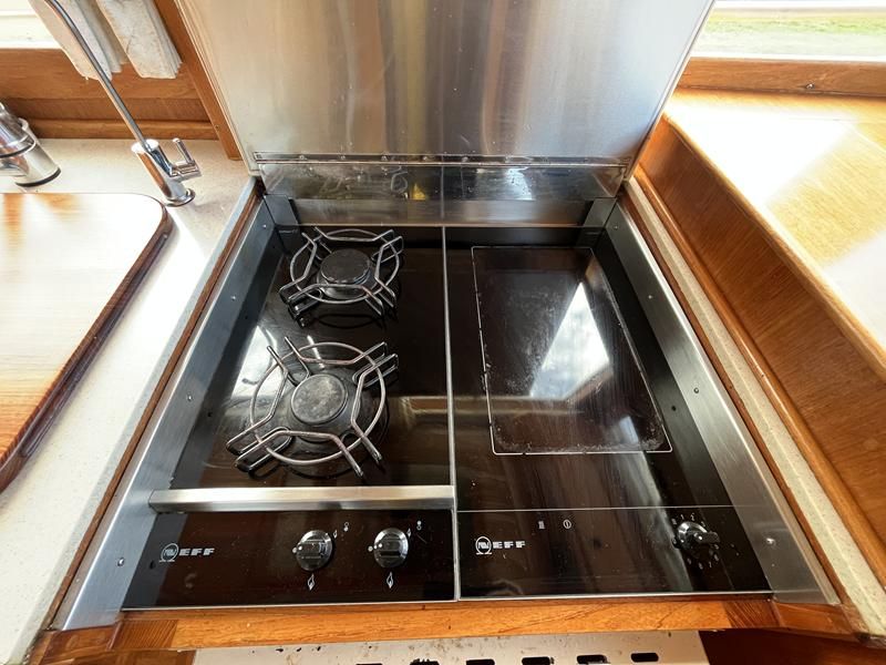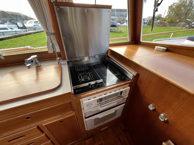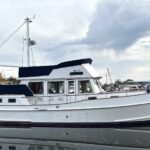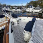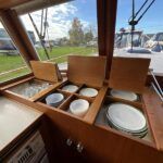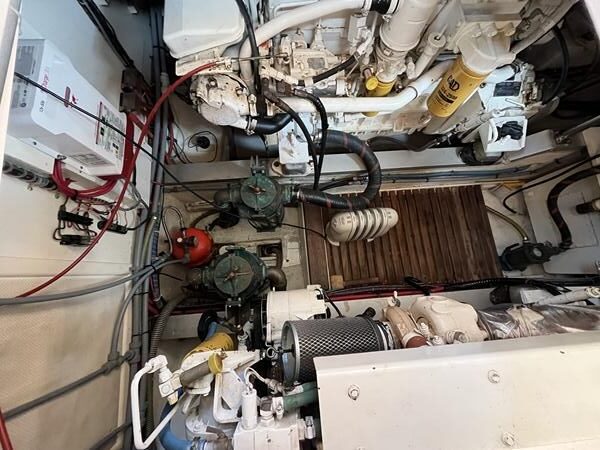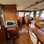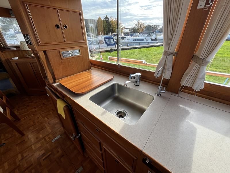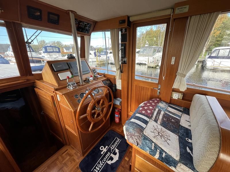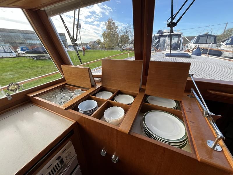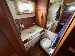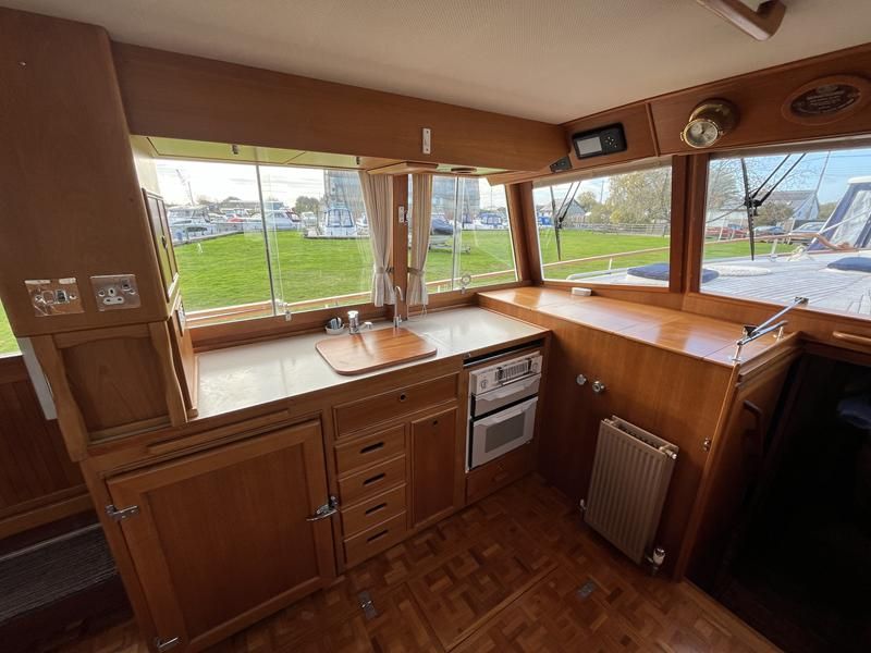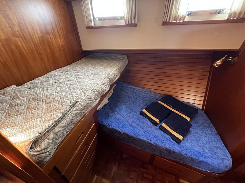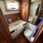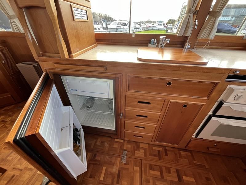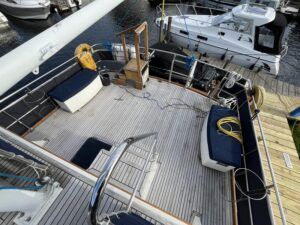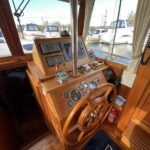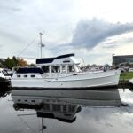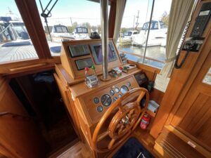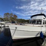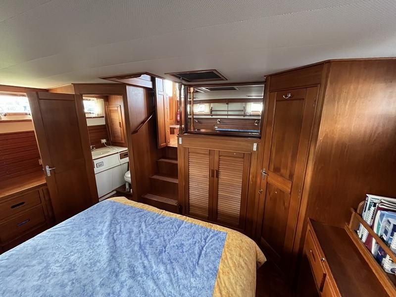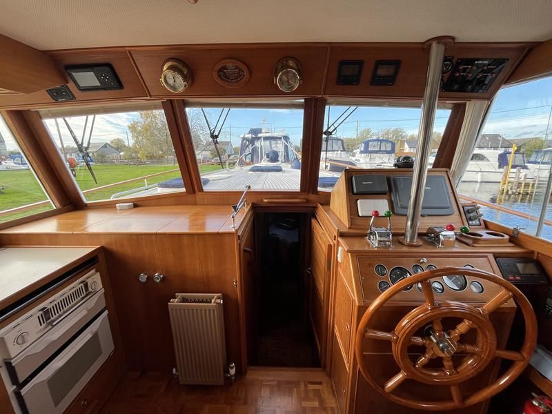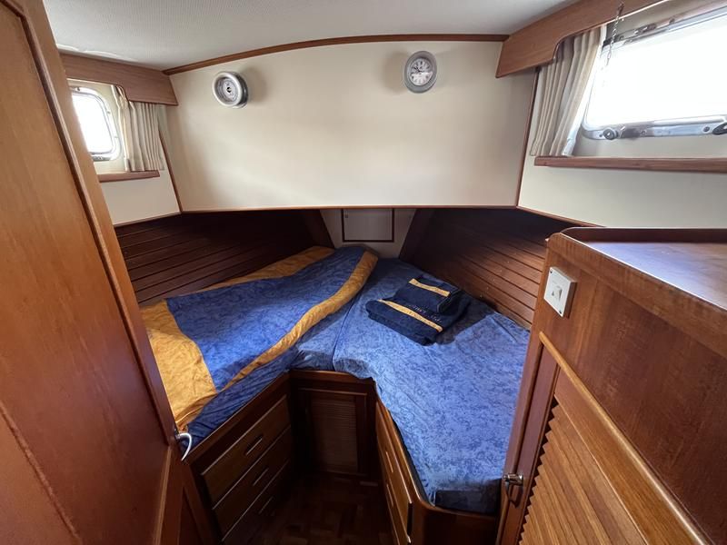 Grand Banks 42 – 1997 – Powered by 2 x Caterpillar 3116 350hp diesel engines. 6 berth accommodation over 3 cabins with 2 x toilet and showers. Master island double owners cabin with separate en-suite heads & shower cubicle. A comprehensive specification including bow and stern thrusters with remote, 6.5kw generator, Hydronic heating, electric windlass, shore power, battery charger, immersion, a suite of Nav equipment inc Autopilot, radar and chart plotters, full teak decking. A timeless modern classic with fantastic build quality coupled with renowned sea keeping. A very comfortable and well thought out Motorboat, ideal for extended Coastal pursuits.