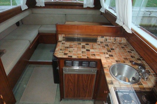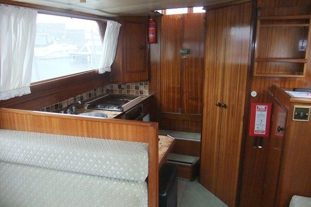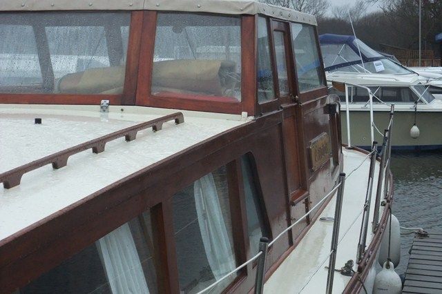 GRP/ TIMBER 34' CENTRE COCKPIT RIVER CRUISER – Built circa 1962 with a B.M.C.1.5 diesel. 4/5 good sized berths in two cabins, two toilets, shower, full equipped galley, shore power, full folding centre wheelhouse allowing passage through broadland bridges.