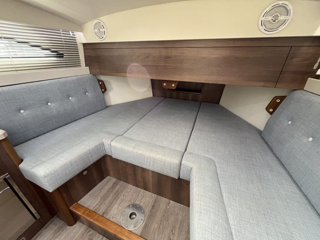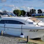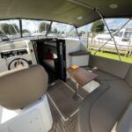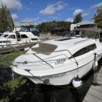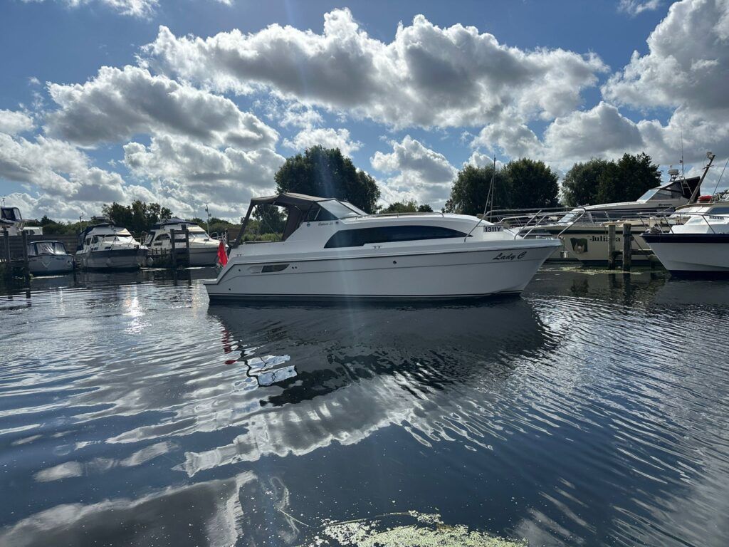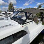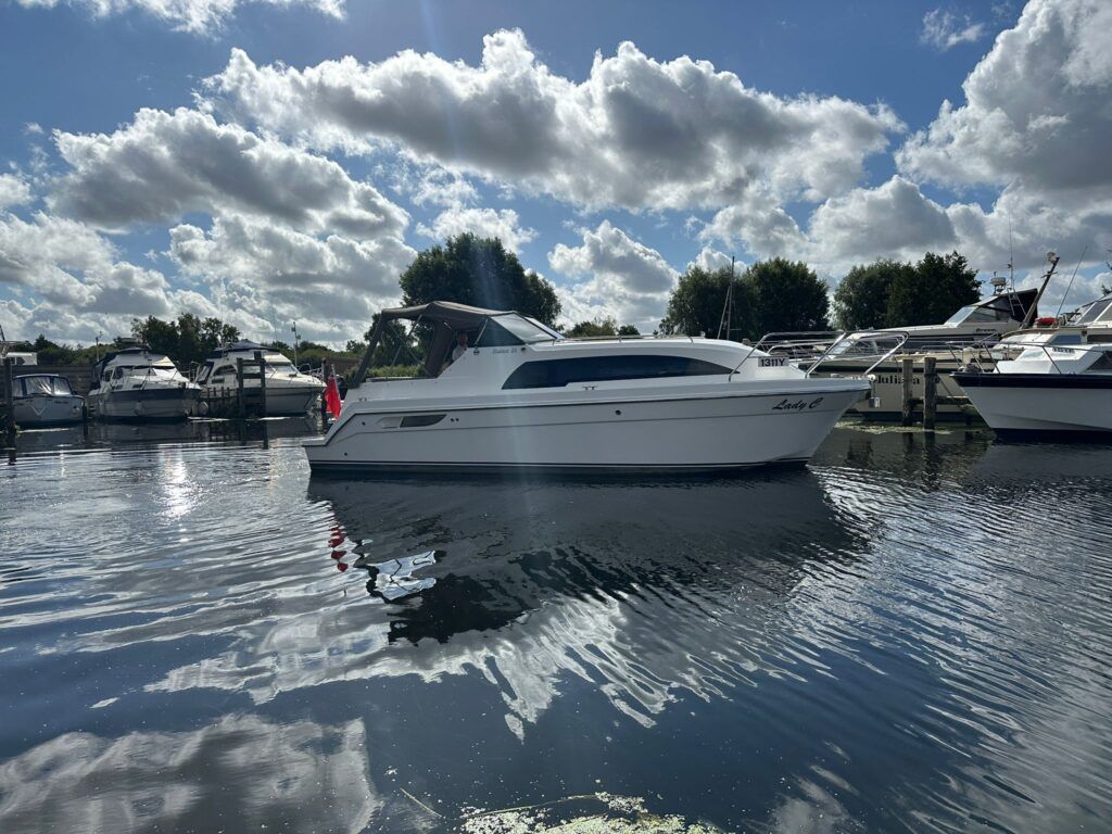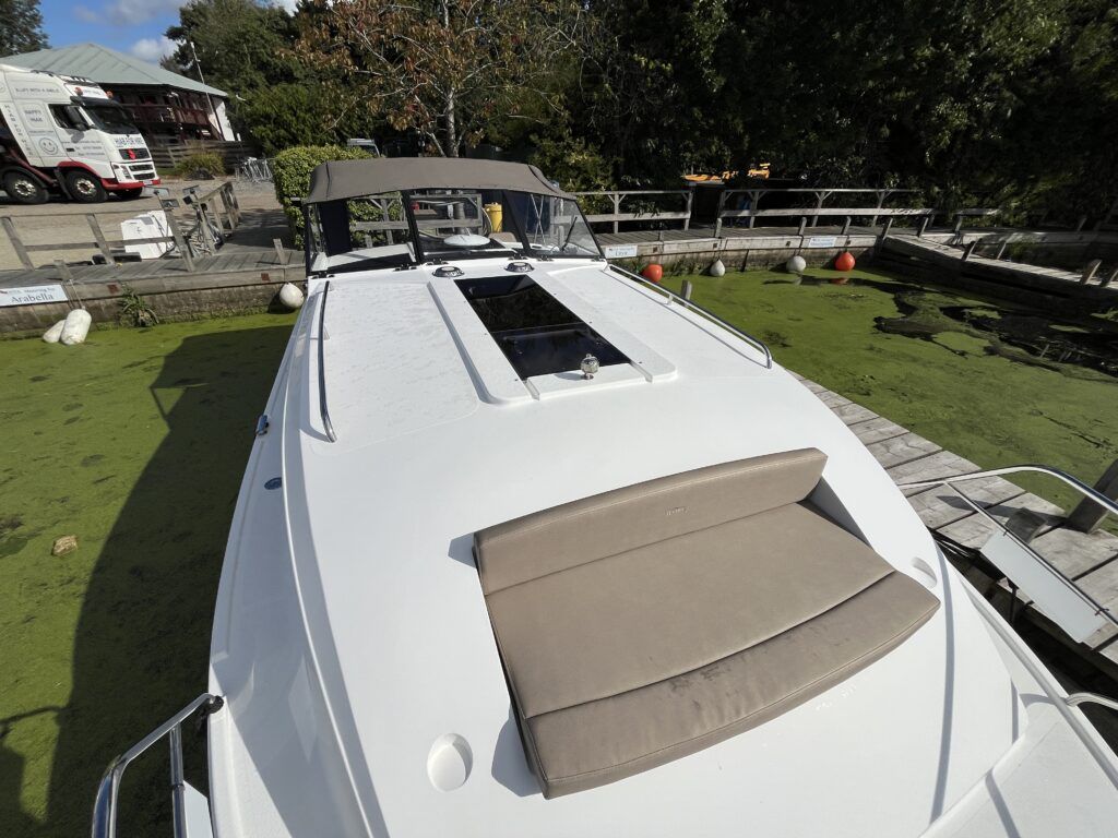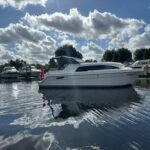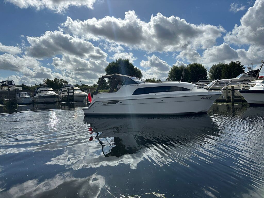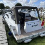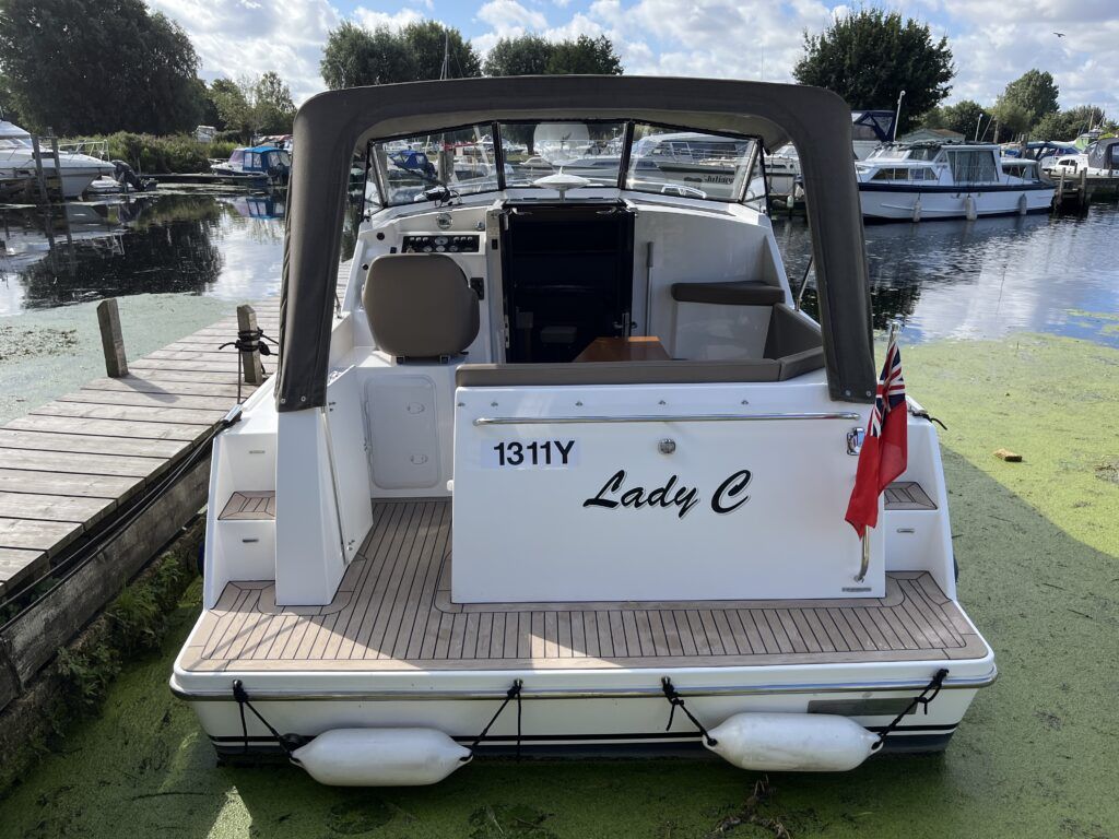 Haines 26 – 2017– Powered by a N4.38 38hp Nanni diesel engine. Open plan cabin layout, accommodating up to 4 with a toilet and shower. Finished beautifully in walnut with Amtico flooring to complete the contemporary look. Specification including bow and stern thrusters, electric windlass, battery charger/inverter, immersion, shore power, warm air heating, electric toilet to holding tank, folding screens & canopy arch and more. BSC 11/29. A stylish and sociable design, perfect for cruising the inland waterways.