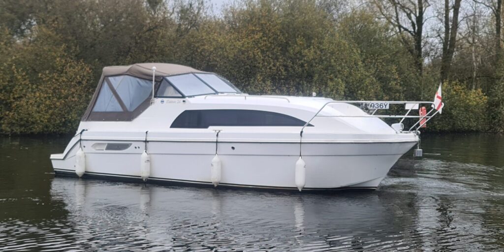 HAINES 26 – 2016 – Single Nanni N4.38 diesel engine. 4 berth accommodation with toilet and shower compartment. Specification to include; Bow and stern thrusters, Eberspacher warm air heating, Victron 1600w combi inverter and battery charger and shore power supply, immersion heater, ultra leather upholstery. Folding screens for increased inland access, synthetic teak laid cockpit and platform. A great chance to acquire a lightly used Haines 26! Boat Safety Certificate until June 2028.