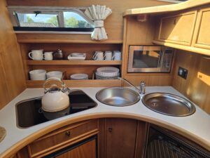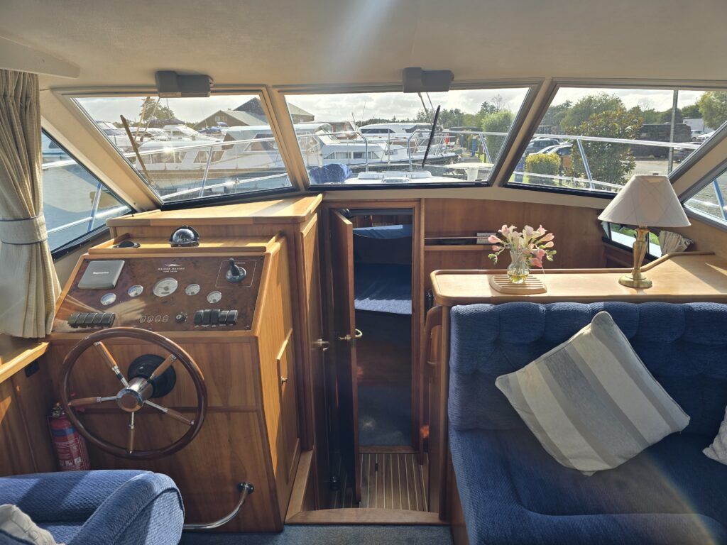 Haines 31 Sedan – 2006 – Powered by Nanni 4.220 HE 50hp diesel engine. 4 berth accommodation in cabin and saloon with a toilet and shower compartment. Specification to include: Bow thruster, electric windlass, shore power, battery charger, 2kw inverter, immersion heater, heated towel rail, eberspacher hydronic heating, speed & depth log, A high quality, one-owner Haines 31 Sedan, well equipped and an excellent all-year-round river cruiser