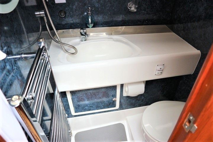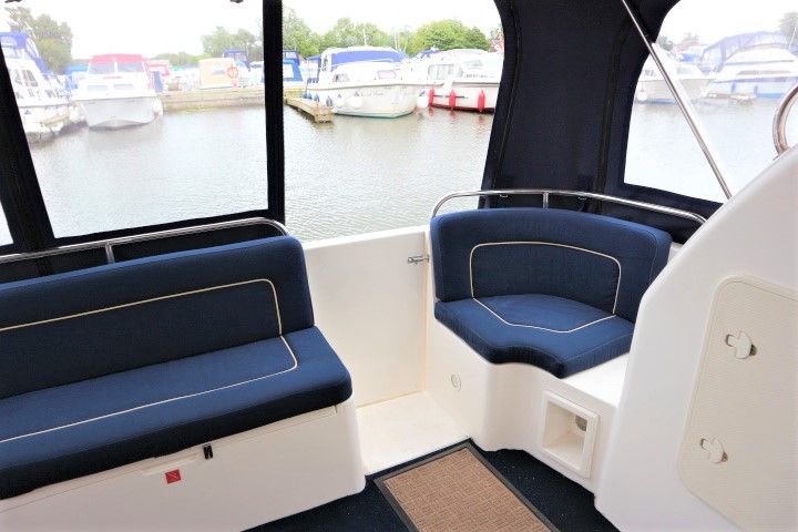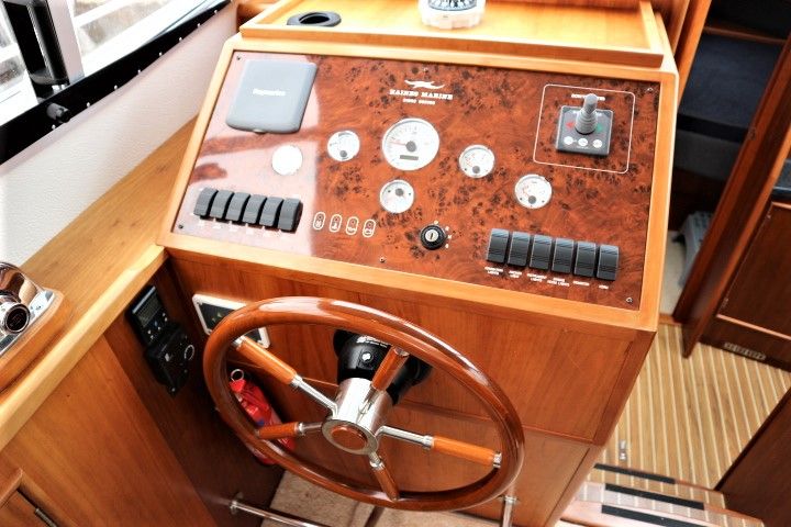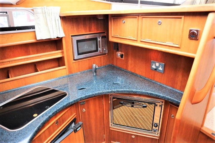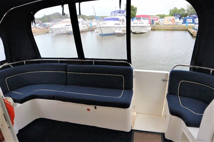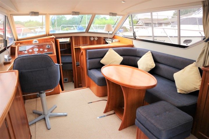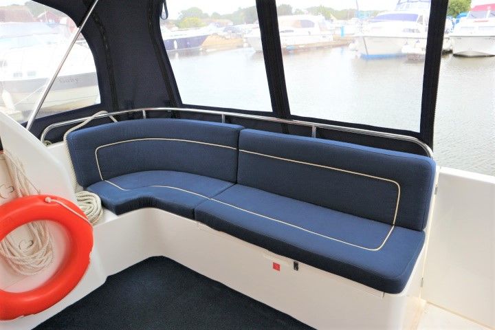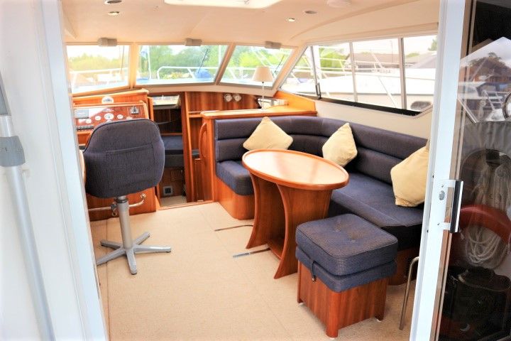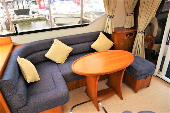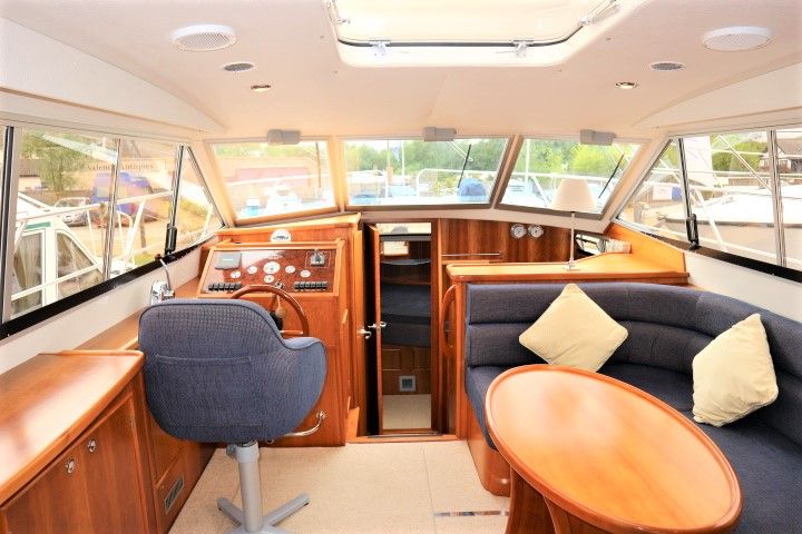 HAINES 31 SEDAN – 2007 – Single Nanni 62hp diesel engine. 4 berth accommodation in cabin and saloon with 1 toilet/shower compartment. Spec including Bow thruster, Electric windlass, shore power, battery charger, 2kw inverter, immersion heater, heated towel rail, eberspacher hot water heating, electric toilet, speed & depth log, BSC 09/19. A lovely example of these beautifully finished Sedan river cruisers with a high specification. NYA STOCK – Fully prepared by our service centre.