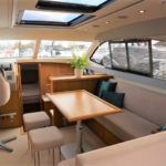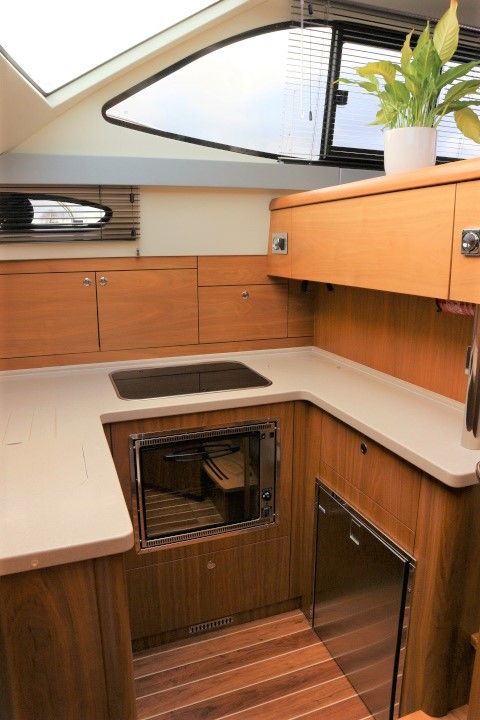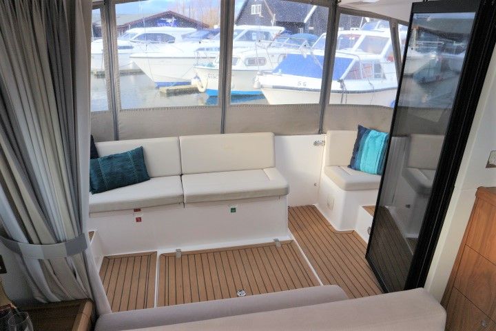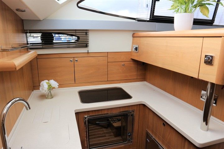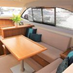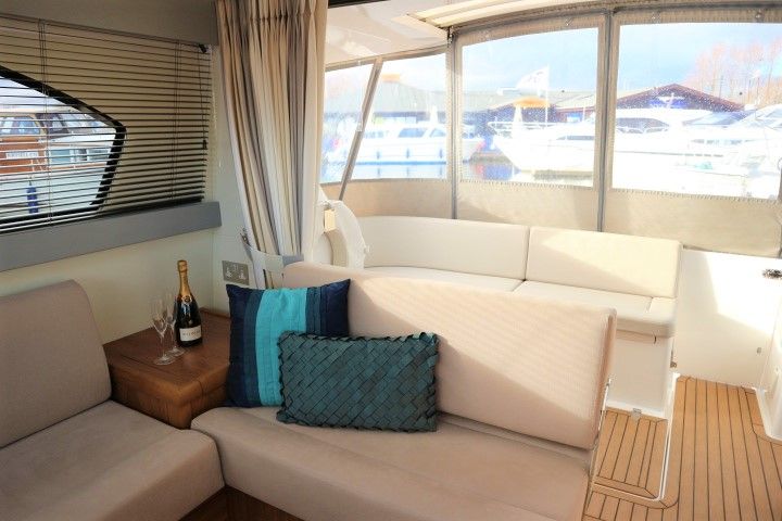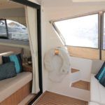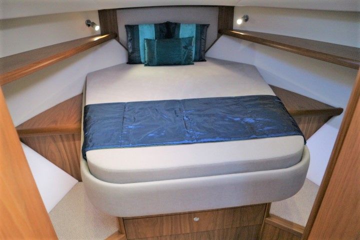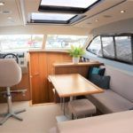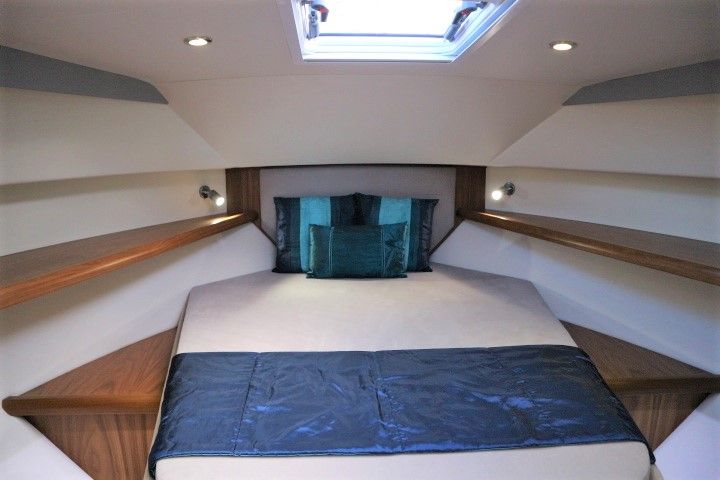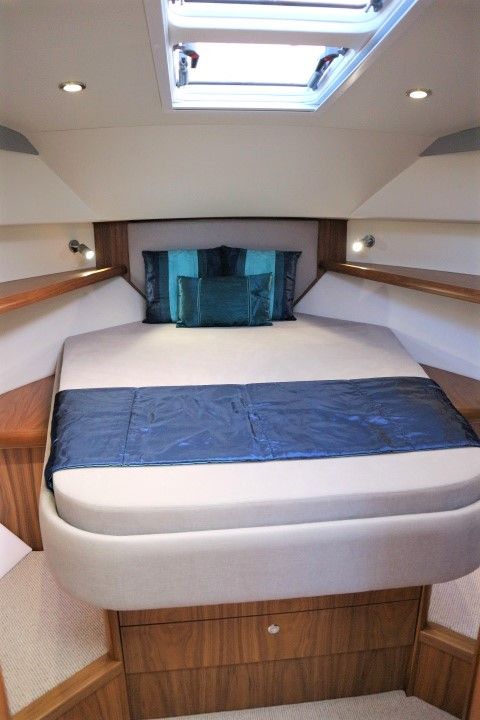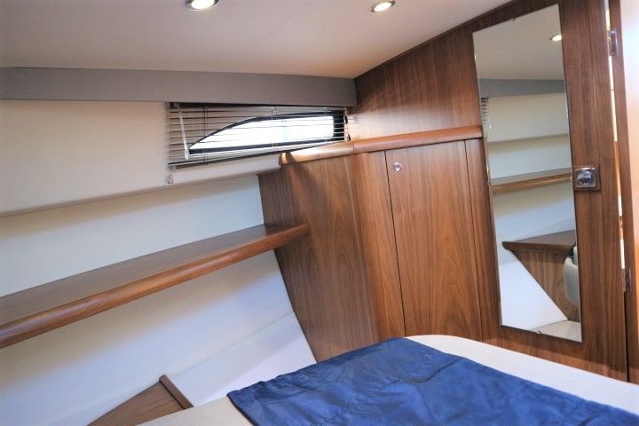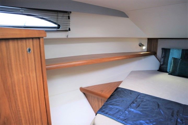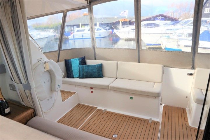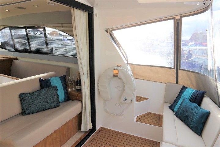 HAINES 32 SEDAN – 2014 – Powered by 1 x Nanni 60hp Diesel engine. Luxury 4 berth accommodation in one cabin & saloon with 1 x toilet/shower compartment. Specification including bowthruster, electric windlass, shore power, battery charger, inverter, immersion, warm air heating, speed & depth log, synthetic teak decking to bathing platform and cockpit. A luxurious well fitted river cruiser with a sociable saloon/cockpit space for entertaining.
