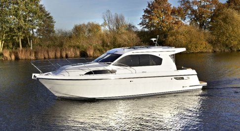 New Haines 32 River Cruiser New Model. 4 or 6 Berth layout options, WC, shower, Glass sliding sunroof, galley, hob/oven, fridge, slide & fold saloon door system. Available to order for July 2013 delivery. Prices from £144,040 inc VAT. For more details follow link: New Haines 32 details