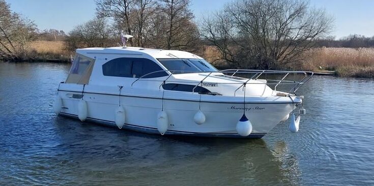 Haines 32 Sedan – 2012 – Single Nanni 43hp diesel engine through a a shaft. 4 berth accommodation with a single toilet and shower compartment. Specification to include; bow-thruster, inverter, warm air heating, flush fitting tinted windows, battery charger, electric windlass, depth and speed logs, Avonite galley work surfaces. “Morning Star” is another nice example of these luxurious and popular Haines motor cruisers, built to their usual high standards. She provides effortless handling and is ideal for cruising the inland waterways. More pictures to follow.