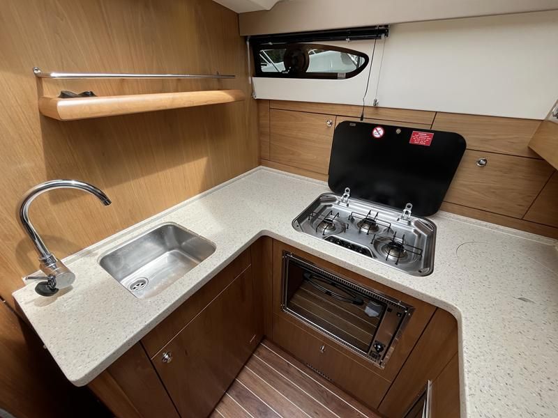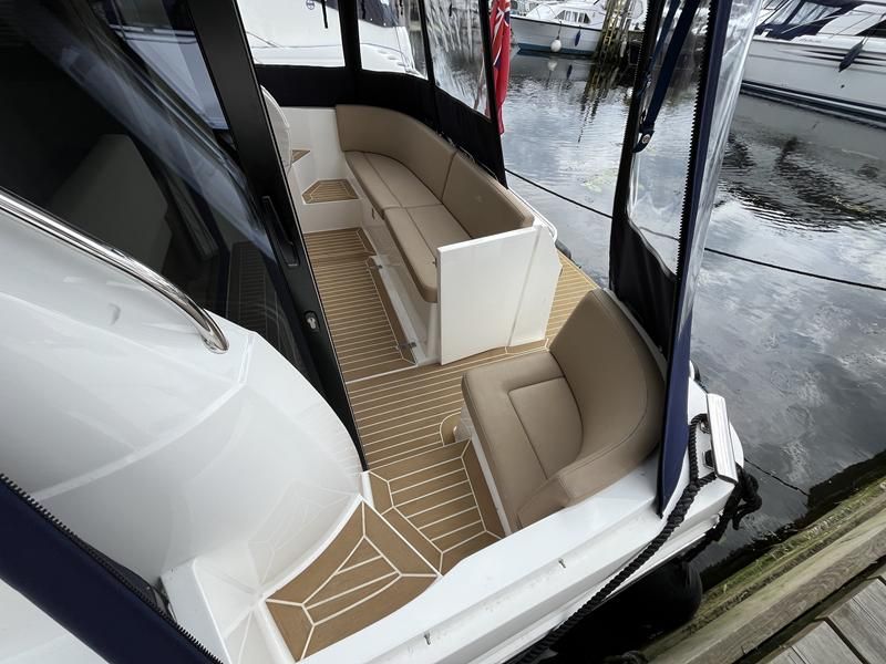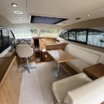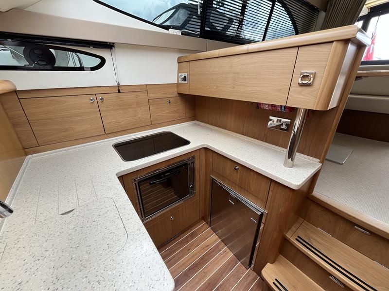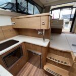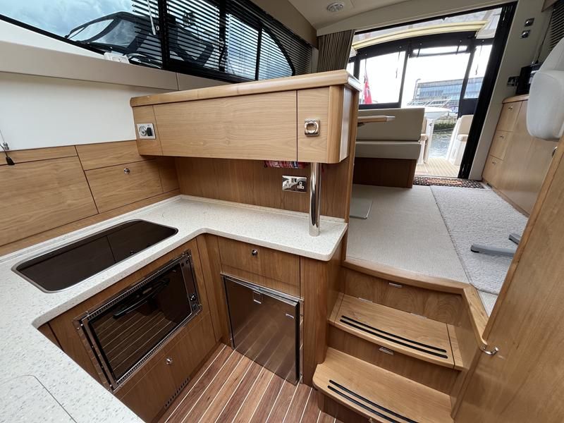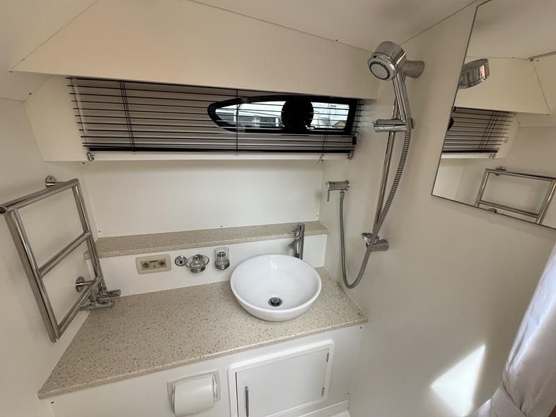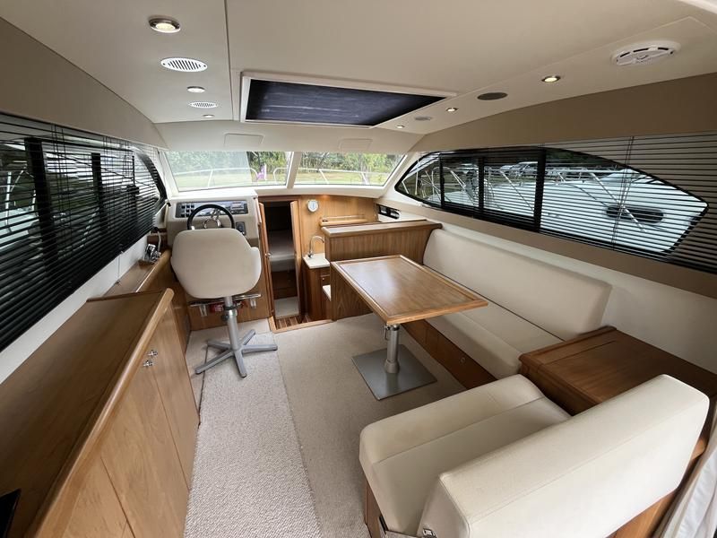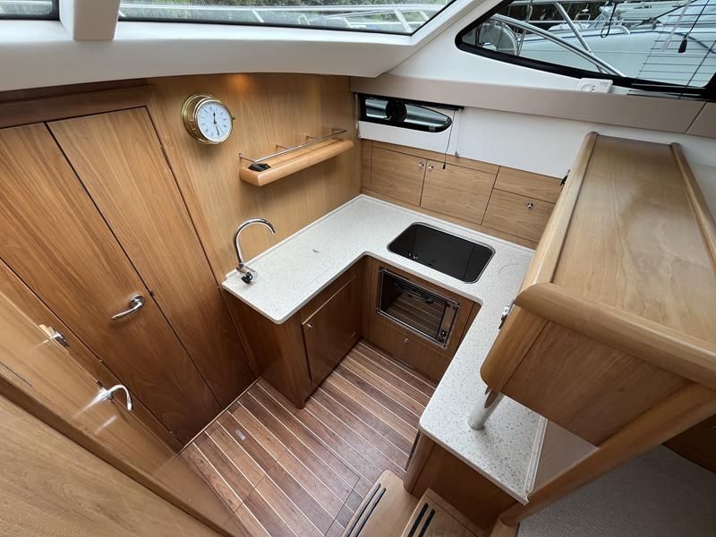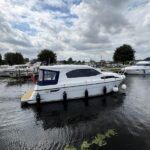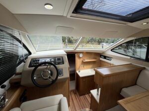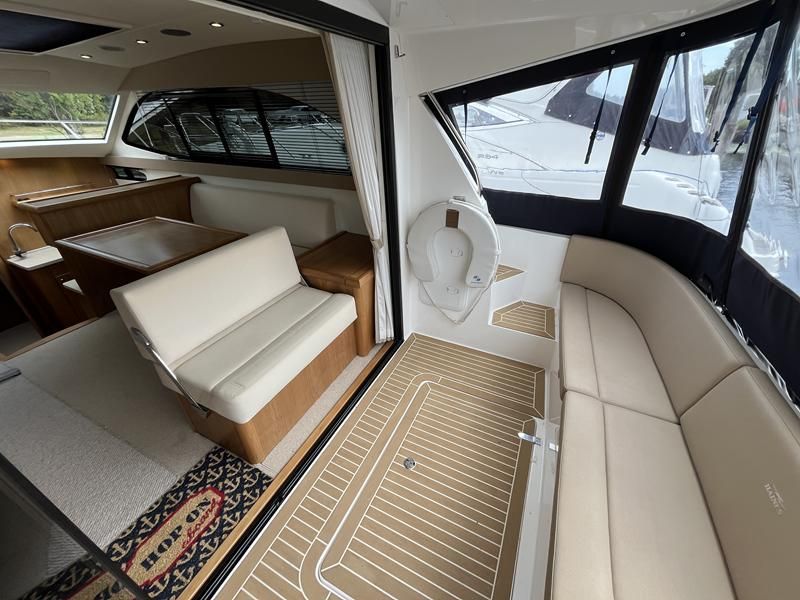 Haines 32 Sedan – 2014 – Powered by a single Nanni 43hp diesel through a shaft. Up to 4 berth accommodation with Island double master cabin & electric flush W/C and shower. Specification including bow and stern thrusters, warm air heating, shore power, battery charger, immersion, synthetic teak laid bathing platform & cockpit, sliding saloon sunroof, and more. Beautifully finished to the usual high standard of Haines with a comfortable saloon and well appointed galley. A very lightly used example of these ever popular Haines river cruisers with only 295 engine hours, perfect for exploring the inland waterways in comfort and style!