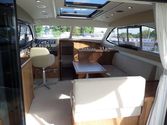 HAINES 32 SEDAN – COMMISSIONED 2014 – Single Nanni N4.43 43hp Diesel engine, 4 berth cruiser with 1 electric heads to holding tank & 1 shower. Warm air heating, Bowthruster, Electric Windlass, Victron battery charger/inverter system, sun hatch in saloon. Excellent accommodation for her size, a fantastic boat for river and estuary cruising. A unique opportunity to acquire this near new boat (only 35 engine hours). A significant saving from new. NYA STOCK – FULLY PREPARED BY OUR SERVICE CENTRE