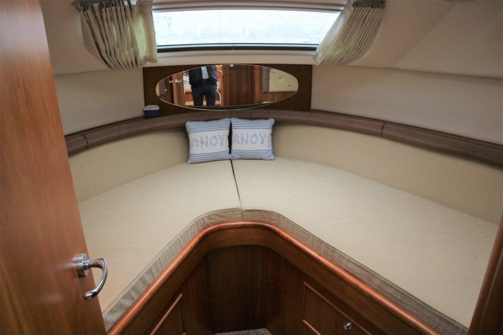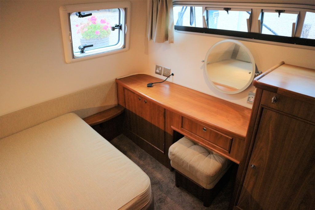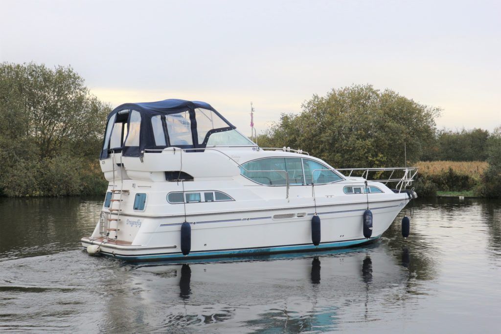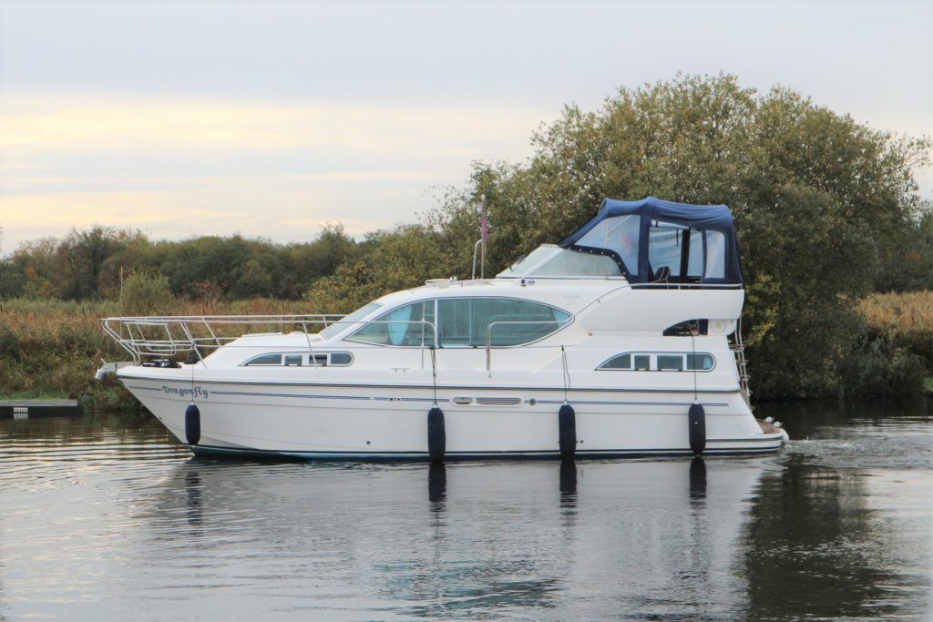 HAINES 320 – 2007 – Powered by a Nanni 5.250 85hp Diesel engine. Luxury 4 berth accommodation with occasional extra 2 in saloon, with 2 x toilet/shower compartments. A high specification including bow and stern thrusters, electric windlass, shore power, battery charger, inverter, immersion heater, Eberspacher hydronic warm air heating including heated towel rails, Avonite galley surfaces, fitted in Cherry wood, teak laid bathing platform & cockpit, folding windscreen giving lower air draft for greater inland access. BSC 06/23. A lovely example of these spacious award winning aft cabin cruisers.