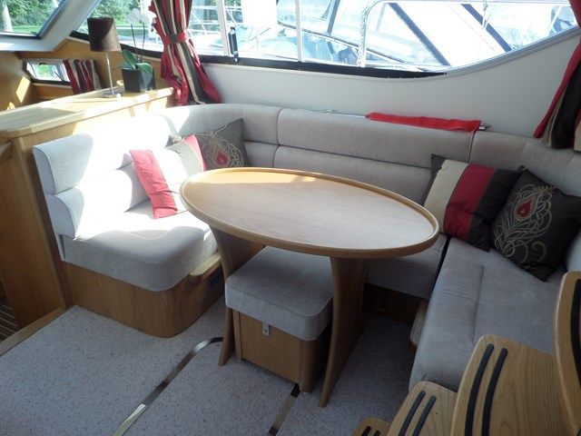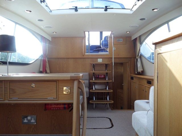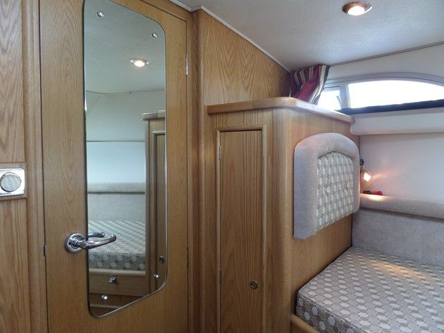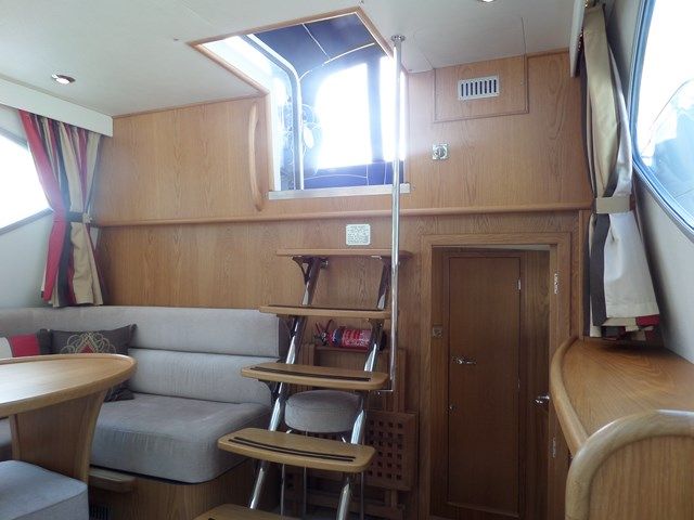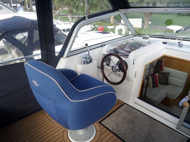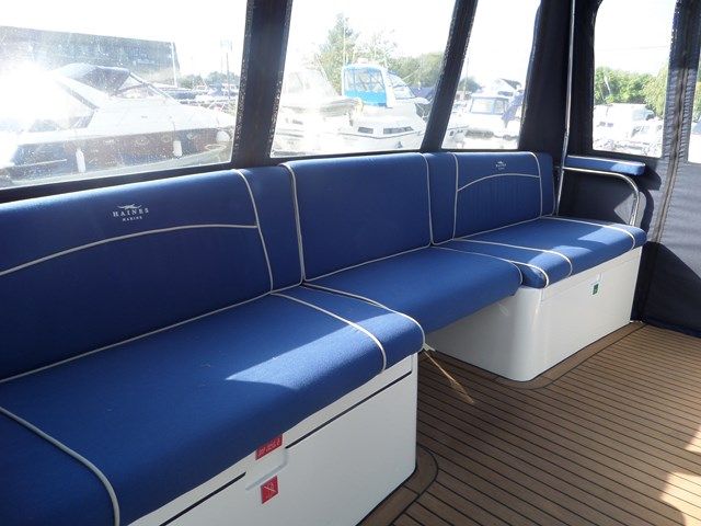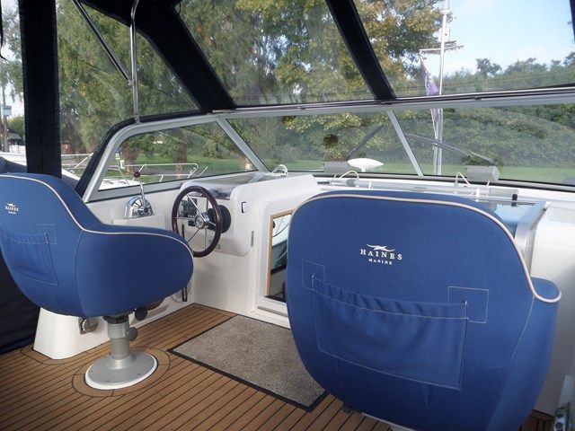 HAINES 320 – 2009, 1 x Nanni 60hp diesel engine, 6 berths with 2 separate cabins and a convertible saloon, 2 x toilets (1 is electric) & showers, Boat Safety Certificate until: 2017. Stunning blue hull, folding screens, 2Kw inverter, flexi – teak bathing platform & cockpit. Handling really is simple thanks to a bow and stern thruster complete with a remote control! The beautiful finish and well thought out accommodation offers up a real sense of space, comfort and luxury. Excellent condition.