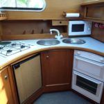 HAINES 335 – 1997 – Single Perkins Sabre 135hp Diesel Engine. 6 berth in 2 cabins with 2 heads to holding tank and 2 showers. Bow thruster and stern thruster, Warm air heating system, battery charger, hydraulic steering. Superb build quality throughout with amazing accommodation space.