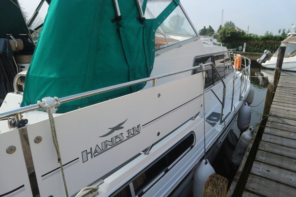 HAINES 335 – 2000 – Powered by a single Perkins M135 135hp diesel. 6 berth accommodation with two electric toilets and two showers. Specification to include; Garmin Plotter, Bowthruster, 4kw generator, warm air heating, holding tank and shore power supply with battery charger and immersion. BSC 07/23. A very well kept Haines 335, diligent owners who have regularly invested in upgrading and maintaining in their 5 year ownership.