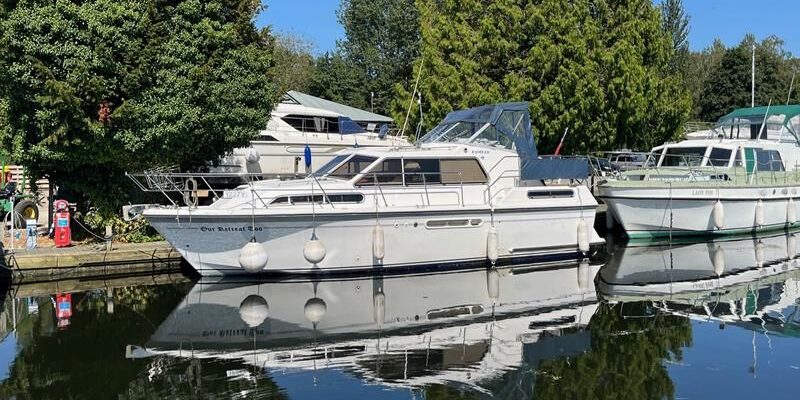 Haines 335 – 1997 – Single Perkins Sabre 135hp diesel engine – Serviced August 24. Comfortable 6 berth accommodation in 2 cabins with 2 toilets and showers. Specification to include; Bow and stern thrusters, warm air heating system, battery charger, hydraulic steering, shore power, blinds. synthetic teak cockpit and more. BSC 2027. A sought-after, versatile motor cruiser featuring fantastic accommodation space and Haines’ renowned solid build quality.