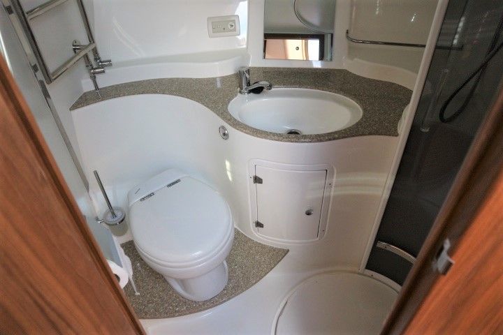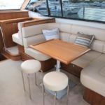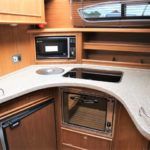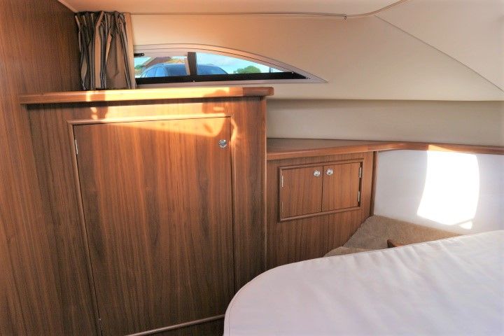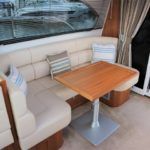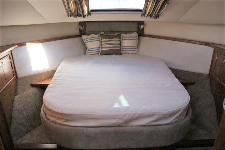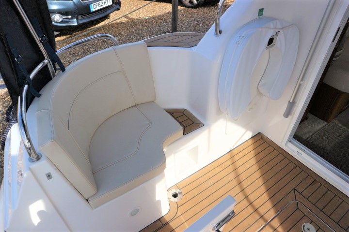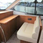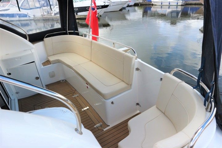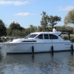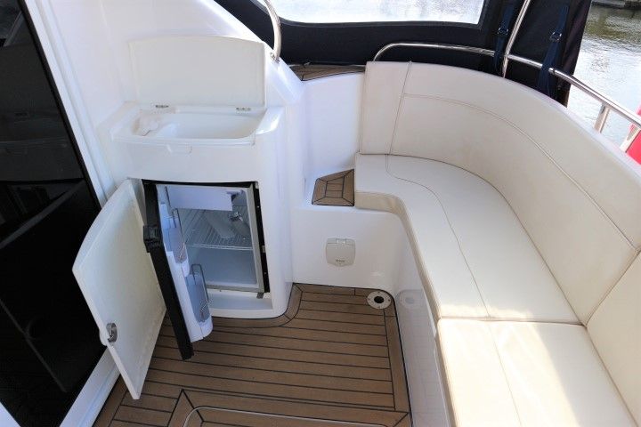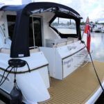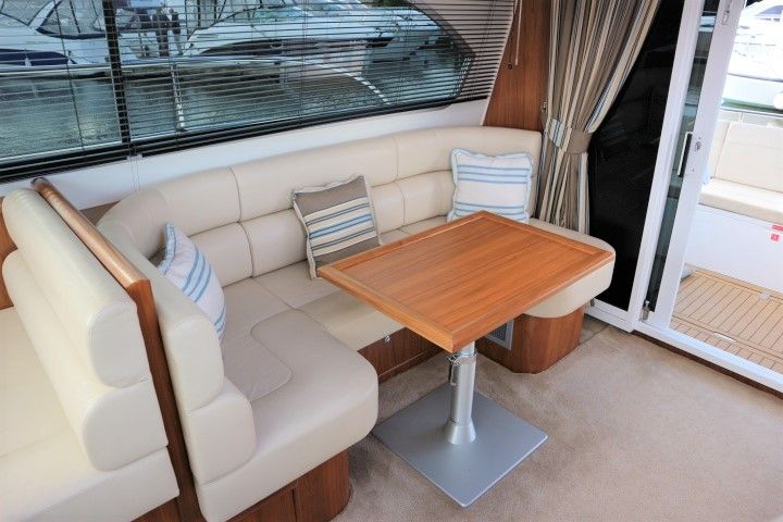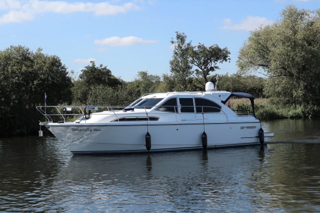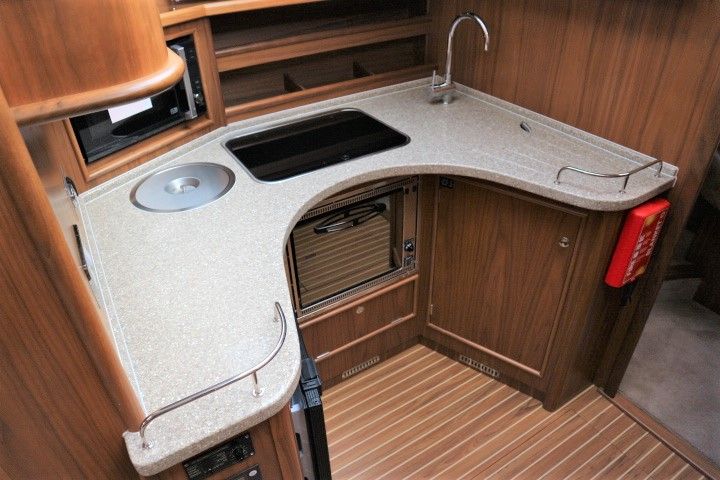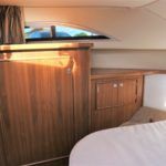 HAINES 35 SEDAN – 2011 – 1 x Nanni T.4200 (200hp) diesel engine. Luxury 4 berth accommodation with Island double berth cabin & 1 x electric WC and shower compartment. High specification including bow and stern thrusters with remote, 4KW Generator, warm air heating, inverter/battery charger, immersion heater, Leather upholstery, electric anchor winch, Avonite galley work surface, teak & holly galley flooring, synthetic teak bathing platform and cockpit, wet bar & second fridge, Raymarine Chart Plotter, Autohelm ST60 Tridata, Tracvision. A truly sumptuous boat with exquisite build quality throughout, finished in Walnut.