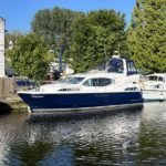 Haines 350 – 2008 – Powered by a Nanni 6.420 280hp diesel engine through shaft. Providing luxury accommodation for up to 6 guests in two cabins and saloon with 2 x toilet/shower compartments. Specification including bow and stern thrusters, electric windlass, Eberpacher hydronic heating system, shore power, battery charger, inverter, immersion, synthetic teak decking, Raymarine Axiom 9 Chart plotter & Speed/Depth log and much more. Benefitting from a recent polish, antifoul, service, new canopy, carpets and Saloon upholstery all in 07/23. A highly presented example of this sought after Aft cabin model. NYA Stock – Sold with 3 month Engine & Gearbox warranty.