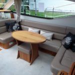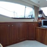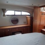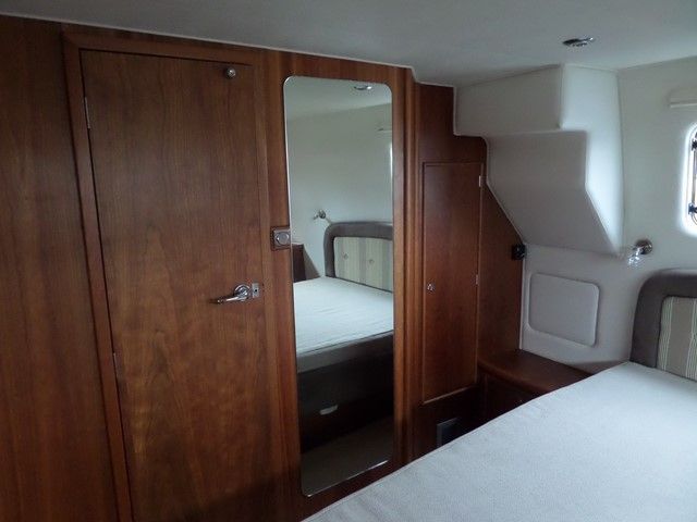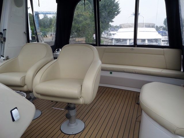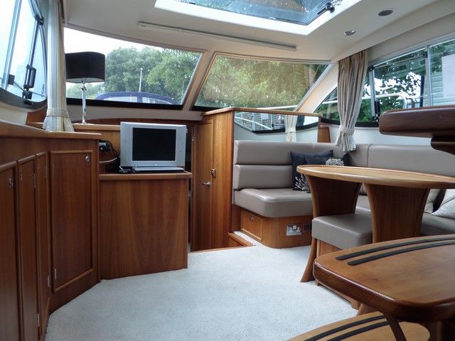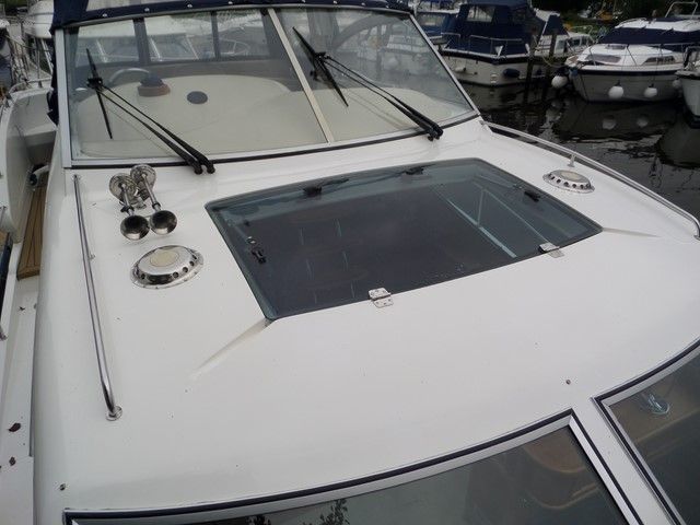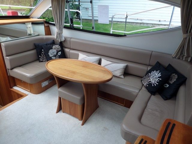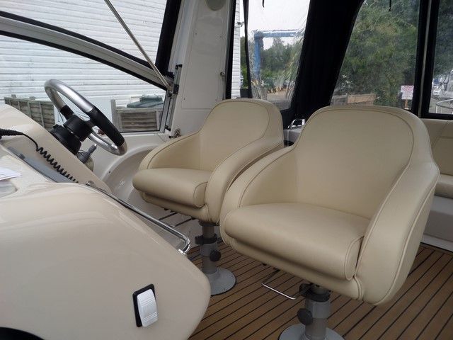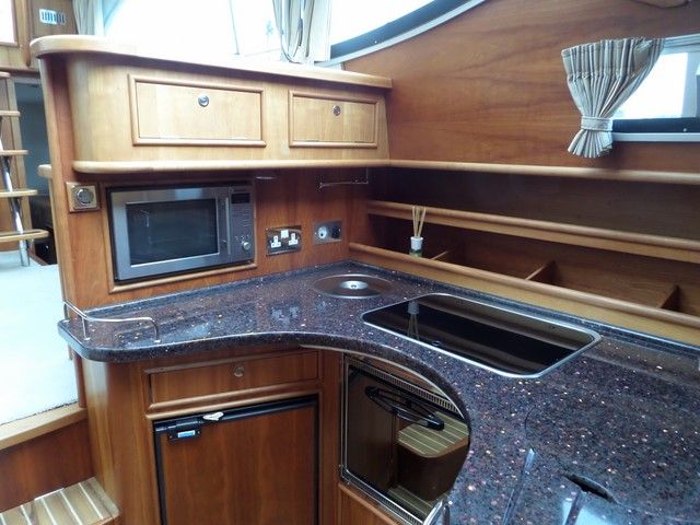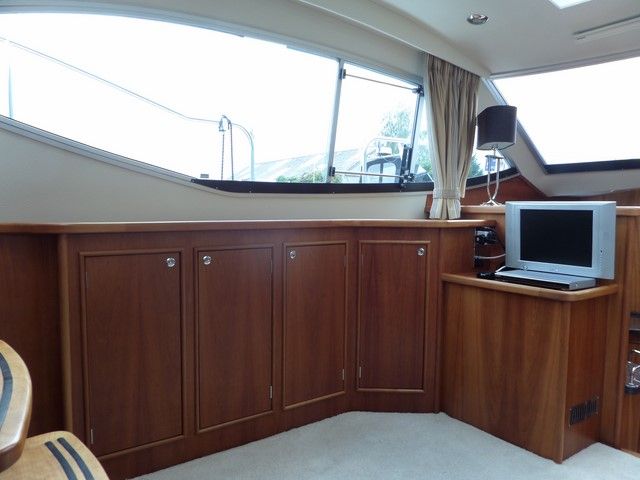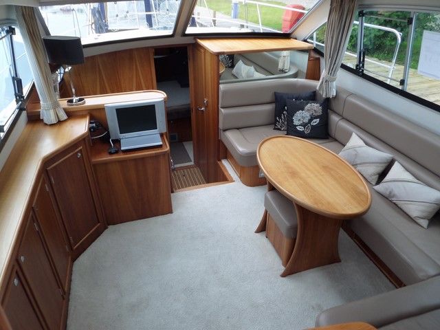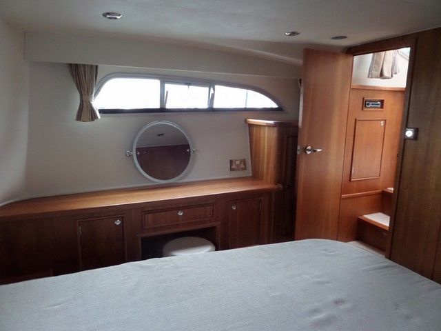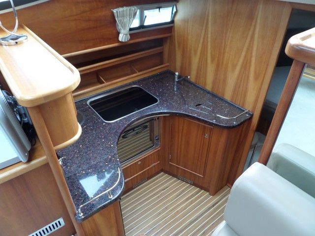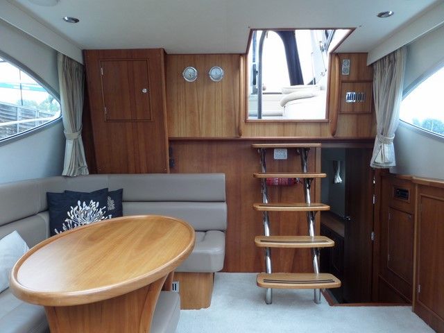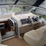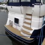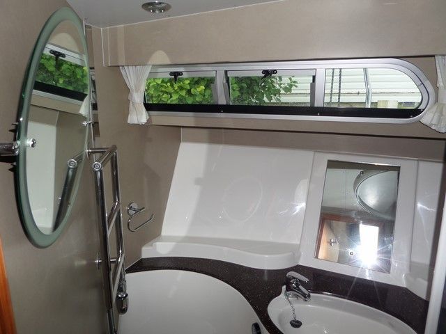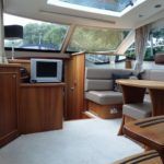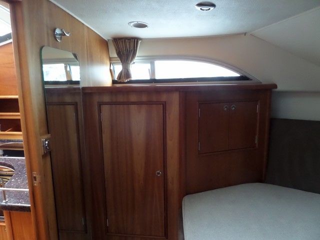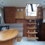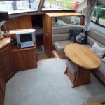 HAINES 350 – 2008, 1 x Nanni 6.420 280Hp diesel engine, 6 berths accommodation with a capacious aft cabin complete with an island berth and en-suite. 2 x toilets & showers. Hydraulic gas rams to folding arch, bow thruster, synthetic teak cockpit, blue hull, Hydronic hot water heating with towel rails in toilet compartments, Raymarine C80 plotter and radar, Raymarine 54E VHF, leather saloon upholstery and the cherry wood finish delivers an opulent feel to this quality and capable motor cruiser.