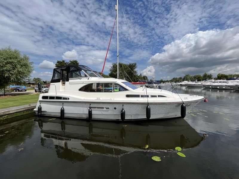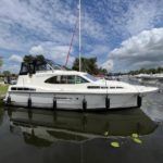 Haines 38 – 1996 – Powered by a single Craftsman CM4.80 (80hp) diesel engine through shaft (fitted in 2015) . Up to 8 berth accommodation over 3 en-suite cabins and saloon. Specification including bow and stern thrusters, electric windlass, warm air heating, shore power, immersion heater, folding screens and arch allowing for greater inland waterways access. A very spacious family aft cabin cruiser. Originally built by Haines Marine for a Charter fleet, she has since benefited from an increased level of specification during private ownership.