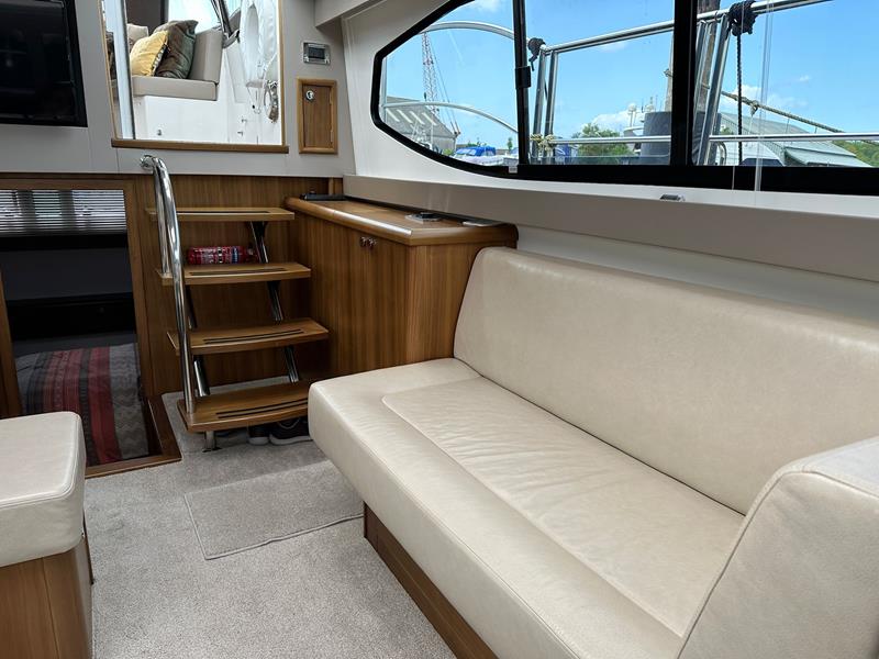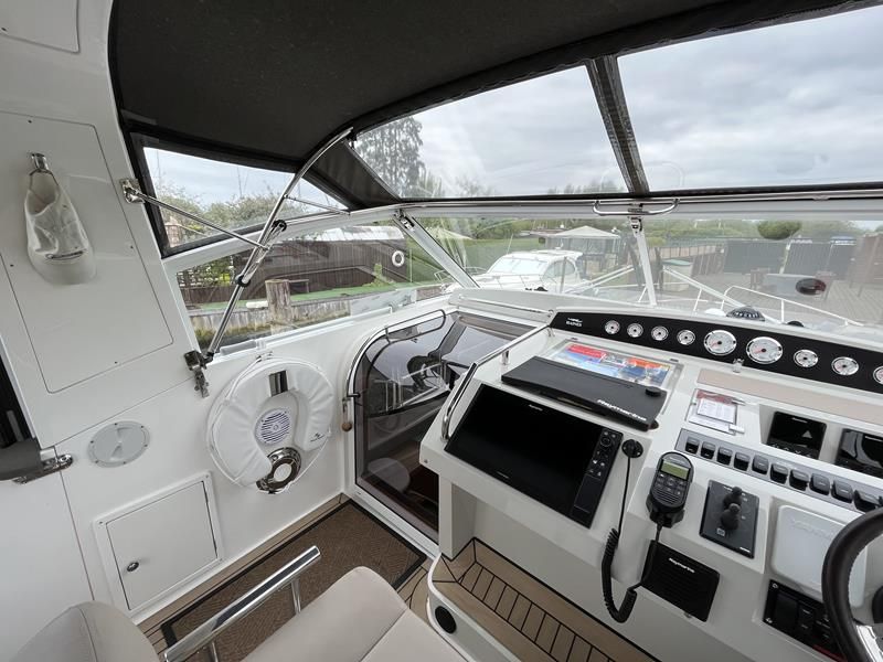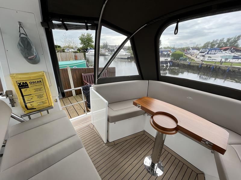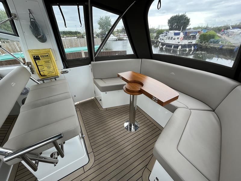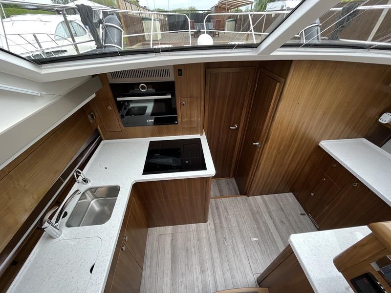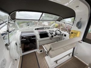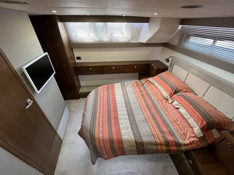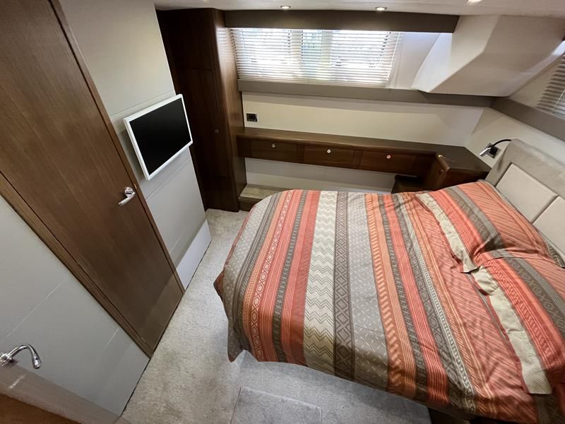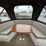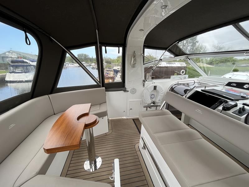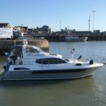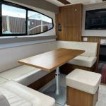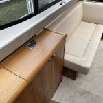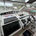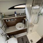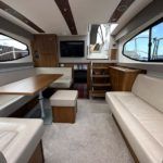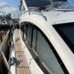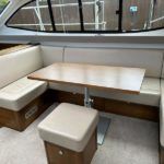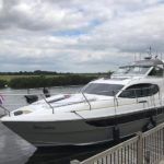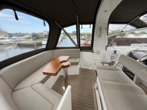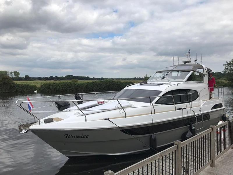 Haines 400 – 2018 – 2 x Yanmar 8LV 370hp diesel engines. Serviced Dec 23. Luxury 4 berth accommodation over two island double en-suite cabins. Spec comprising of Eberspacher Hydronic D5 heater, bow and stern thruster, Victron inverter/120amp battery charger, Fischer Panda generator, electric windlass, hydraulic arch, a range of Raymarine navigation equipment to include; plotter, radar, autopilot, 3D vision, MFD, AIS and VHF. Synthetic teak laid cockpit, bathing platform and decks. A unique opportunity to own a Haines 400, the flagship of the range, which has been beautifully finished in walnut to the renowned high standards of Haines.