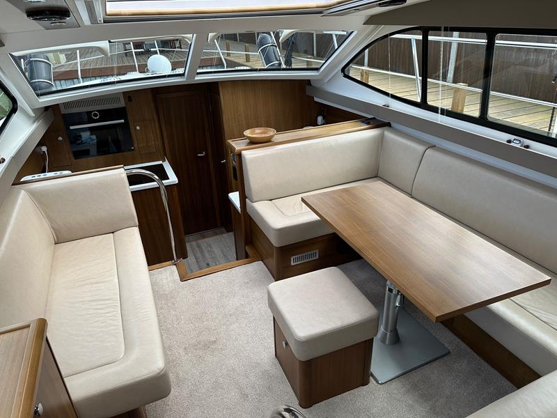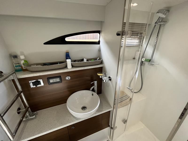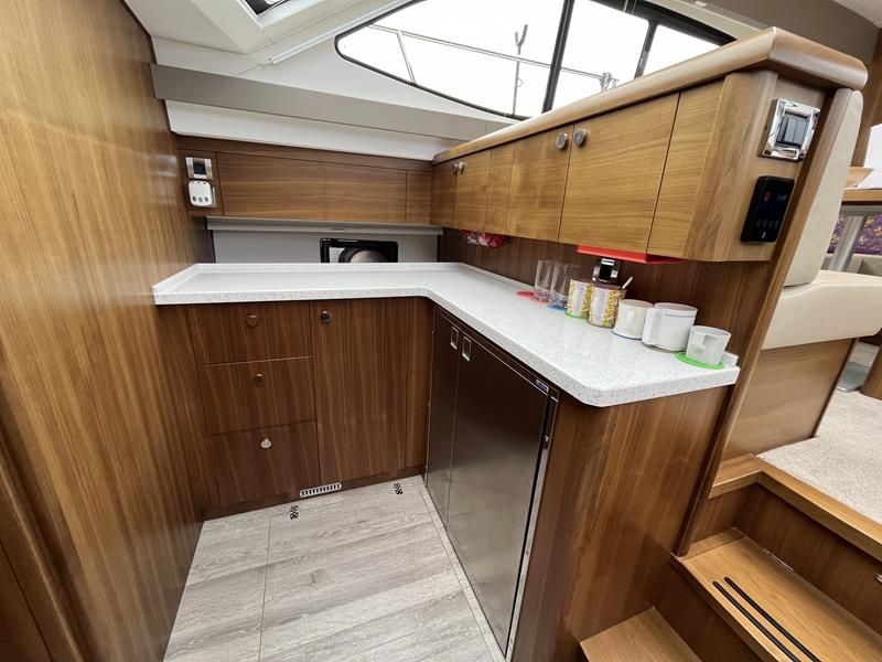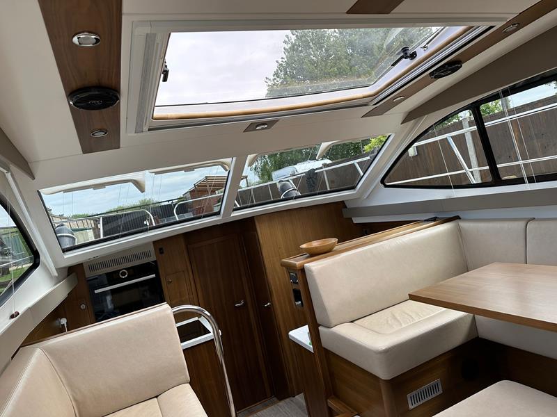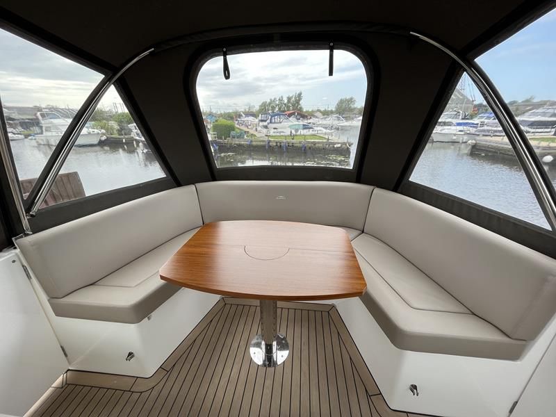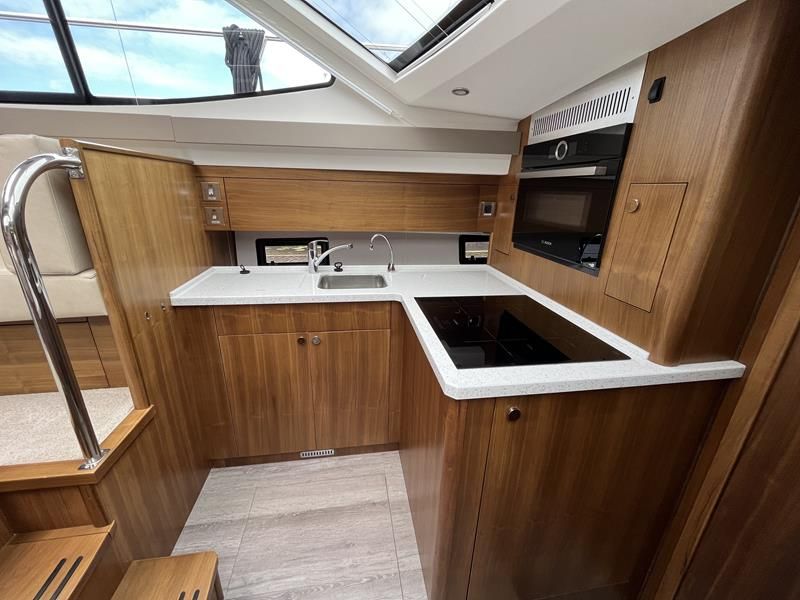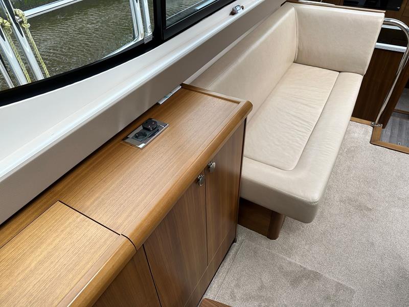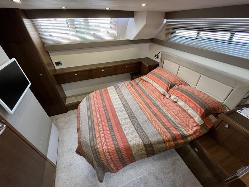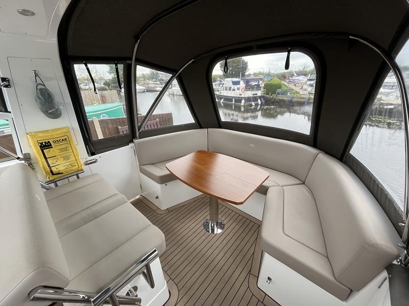 Haines 400 – 2018 – 2 x Yanmar 8LV 370hp diesel engines. Serviced Dec 23. Luxury 4 berth accommodation over two island double en-suite cabins. Spec comprising of Eberspacher Hydronic D5 heater, bow and stern thruster, Victron inverter/120amp battery charger, Fischer Panda generator, electric windlass, hydraulic arch, a range of Raymarine navigation equipment to include; plotter, radar, autopilot, 3D vision, MFD, AIS and VHF. Synthetic teak laid cockpit, bathing platform and decks. A unique opportunity to own a Haines 400, the flagship of the range, which has been beautifully finished in walnut to the renowned high standards of Haines.