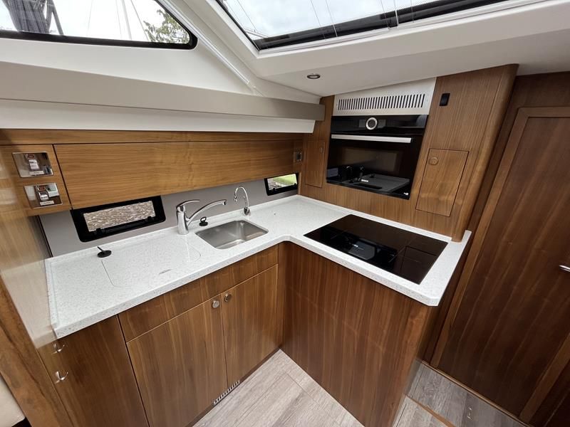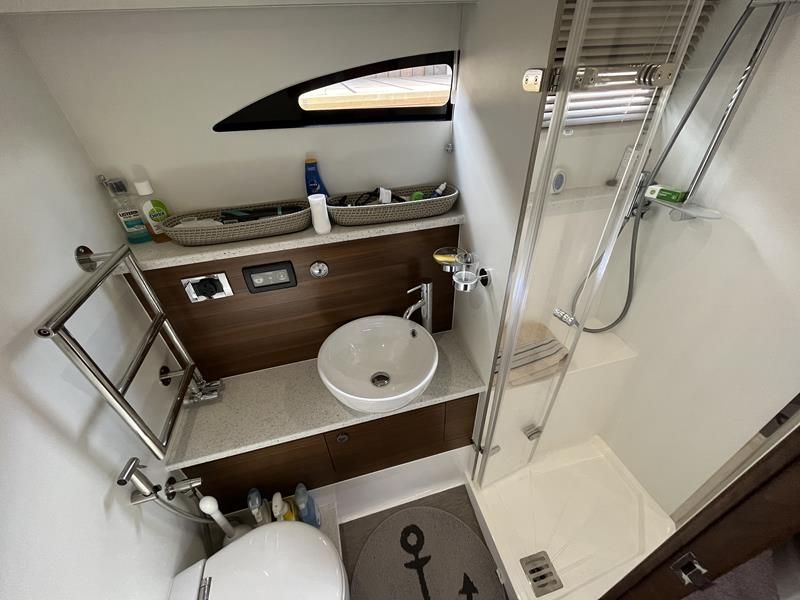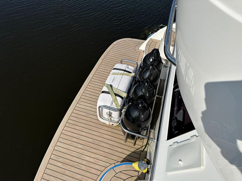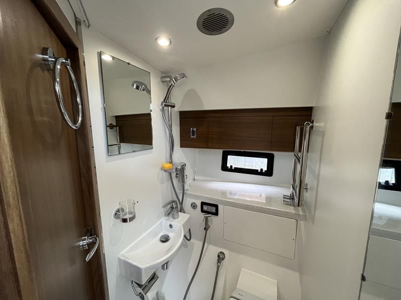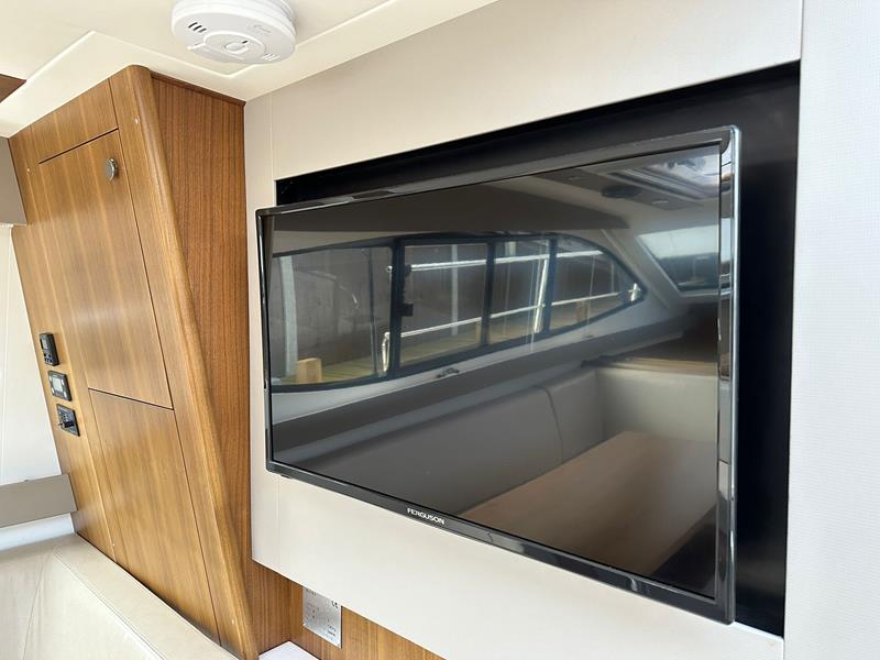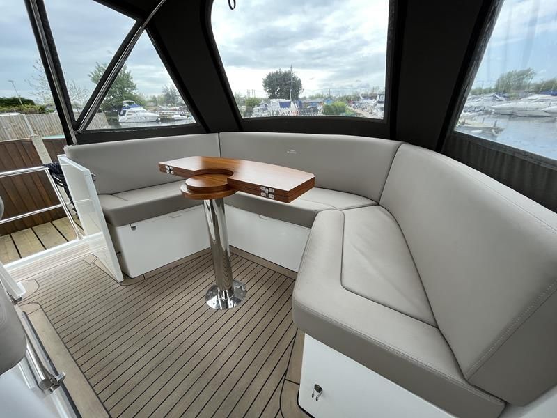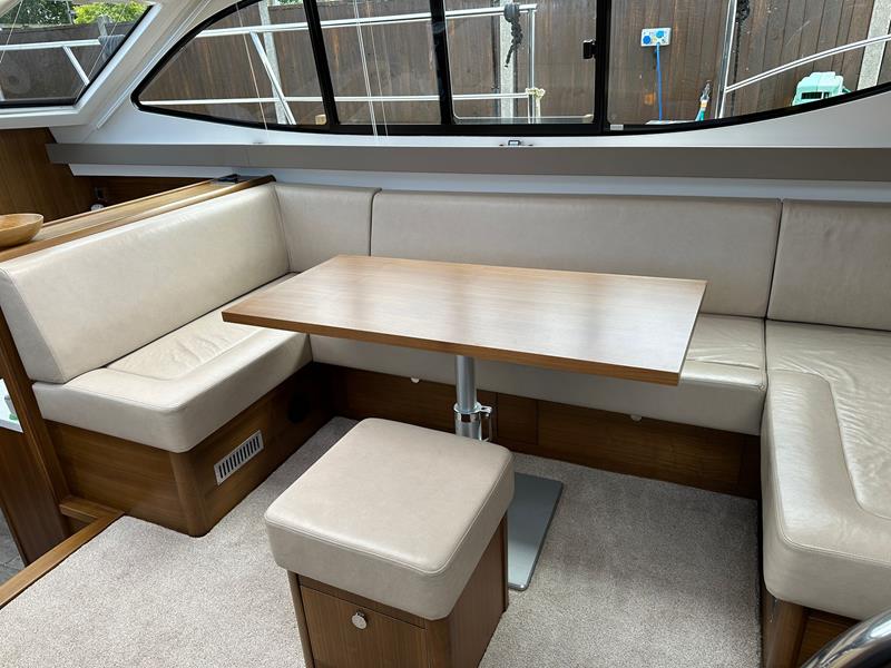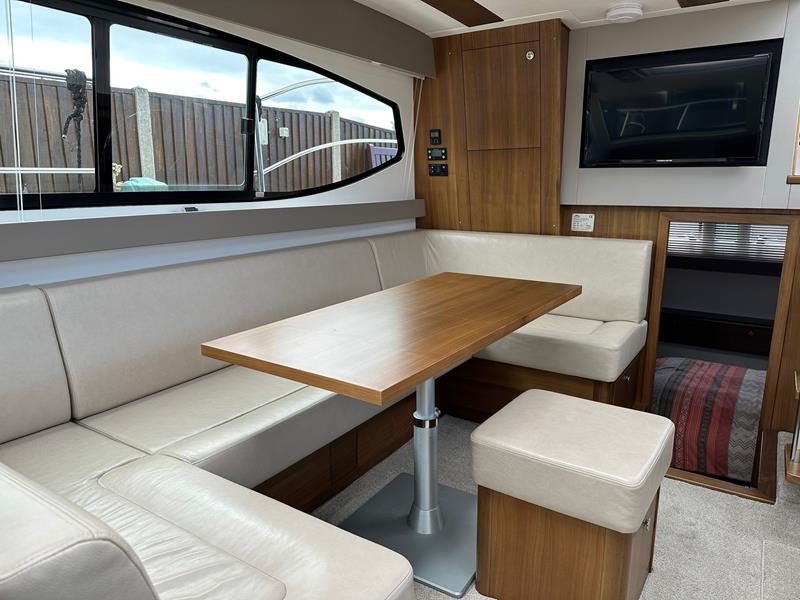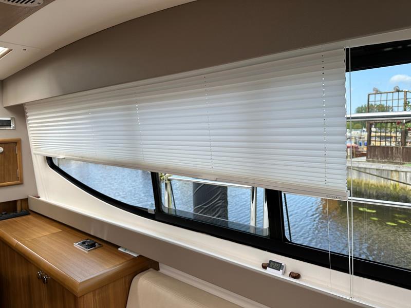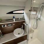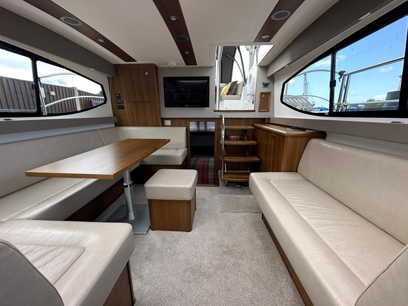 Haines 400 – 2018 – 2 x Yanmar 8LV 370hp diesel engines. Serviced Dec 23. Luxury 4 berth accommodation over two island double en-suite cabins. Spec comprising of Eberspacher Hydronic D5 heater, bow and stern thruster, Victron inverter/120amp battery charger, Fischer Panda generator, electric windlass, hydraulic arch, a range of Raymarine navigation equipment to include; plotter, radar, autopilot, 3D vision, MFD, AIS and VHF. Synthetic teak laid cockpit, bathing platform and decks. A unique opportunity to own a Haines 400, the flagship of the range, which has been beautifully finished in walnut to the renowned high standards of Haines.
