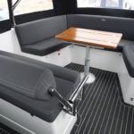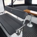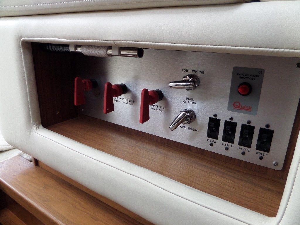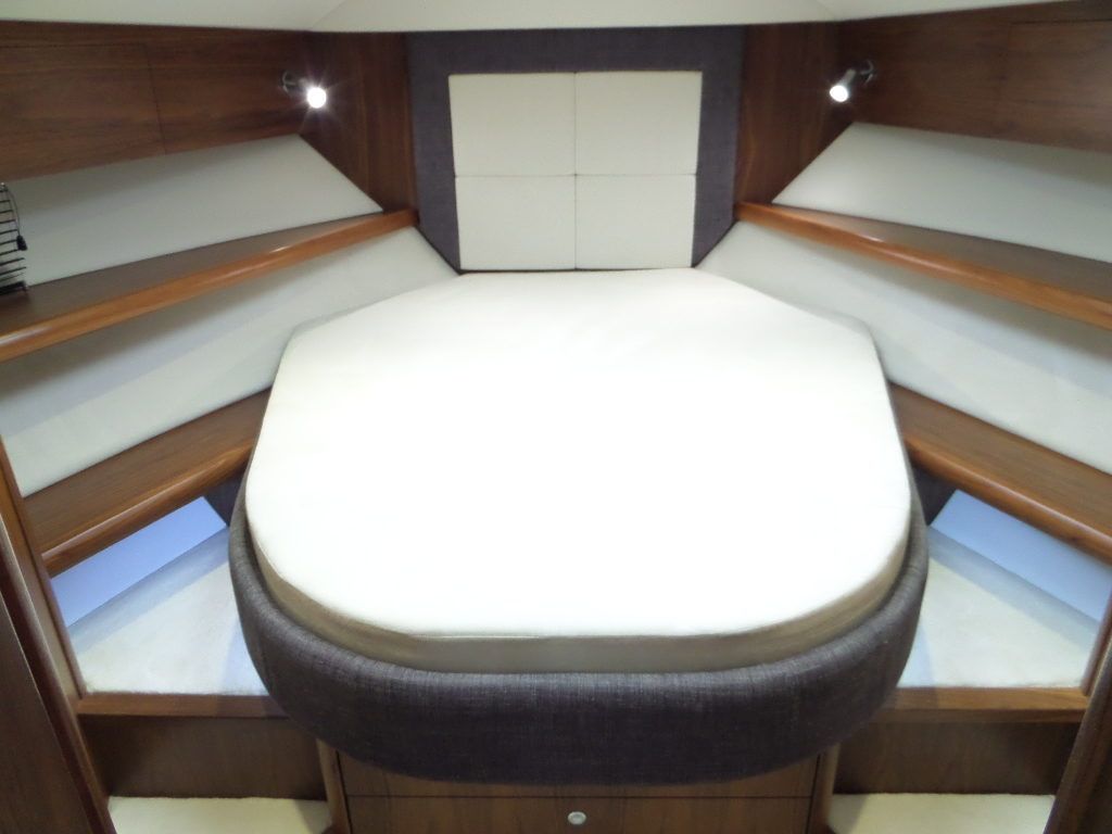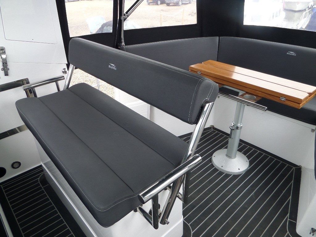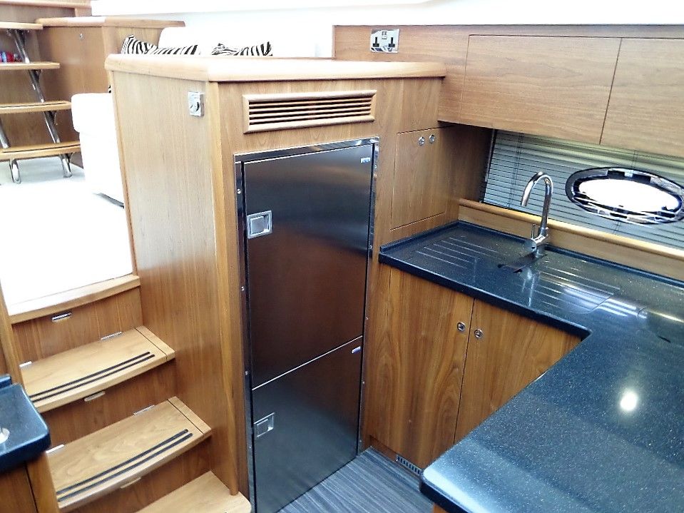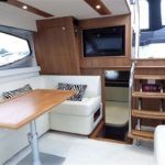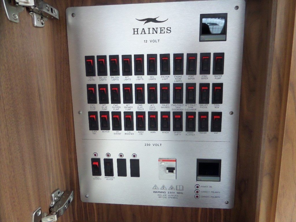 HAINES 400 – 2013. Twin Yanmar Diesel 220hp engines. 6 berth accommodation in 2 spacious cabins with island double berths, both with en-suite and a further double conversion in the Saloon. A highly equipped example with remote controlled bow and stern thrusters, electric anchor winch, 2KW inverter/battery charger, hydraulic folding radar arch, Garmin nav suite, centre lift davit, Hydronic heating system, charcoal and grey teak deck to cockpit, steps & bathing platform. A truly stunning boat beautifully finished in walnut and leather in superb condition.
