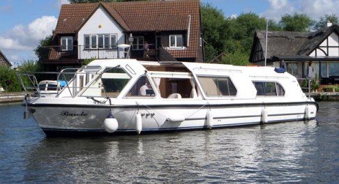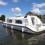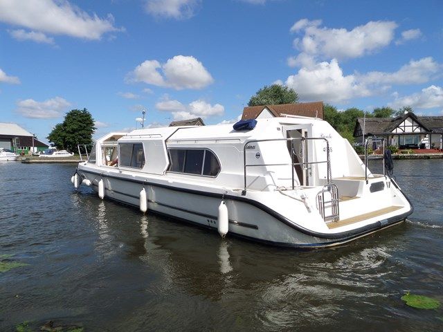 HAINES BURE 36 – 2009, 1 x 50hp Nanni diesel engine. Luxurious aft cabin with island double berth & a further convertible double berth in saloon. Large en-suite with separate shower compartment, fully integrated pop-up TV system, hot water heating including heated towel rail in the toilet compartment, 2kw inverter, bow thruster, teak and holly flooring throughout, electric toilet, teak laid bathing platform, reversing camera. An exceptional example of these luxury river cruisers. Viewing highly recommended!