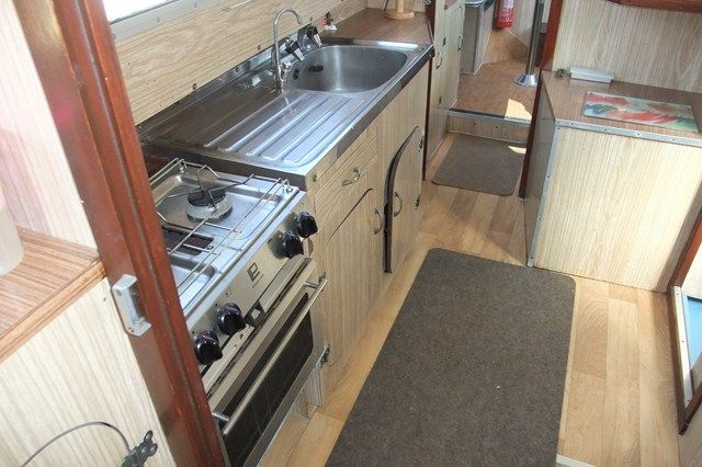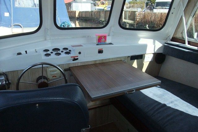 HAMPTON 25 SAFARI – Built circa 1975 with a BMC 1.5 diesel. 4 berths, pumpout toilet/shower. Two burner with grill and oven, fridge, hot water supply, shore power, heating. Full sliding roof, low air draft allowing passage under broadland bridge. BSC expires 2015