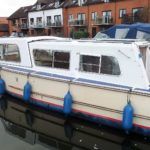 HAMPTON 25 SAFARI – 1971, 1 x Perkins 4.108 43Hp diesel engine, 4 berth accommodation in 2 cabins, 1 x toilet & shower, Boat Safety Certificate until 2018. Spec including: bow thruster, inverter, shore power, battery charger, hot air heating system, full sliding roof, holding tank. Serviced 2016. A popular river cruiser with a low air draft and high spec!