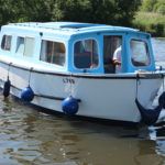 HAMPTON 25 SAFARI MKIII – 1978, Perkins 4.108 diesel. 3 berths, toilet to holding tank, shower, galley, shore power, hot water, new upholstery 2020, 2 new batteries 2020, engine serviced 2020, BSC 2023. Hull polished and antifouled June 2021. Built in Oulton Broad the MKIII version of this popular craft boasts a forward door to a forward well with moulded seating and a sliding sunroof in the wheelhouse.